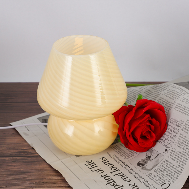 きのこランプアメリカ中古ヴィンテージストライプガラスレトロ電気スタンドベッドサイドusb寝室雰囲気ナイトライト