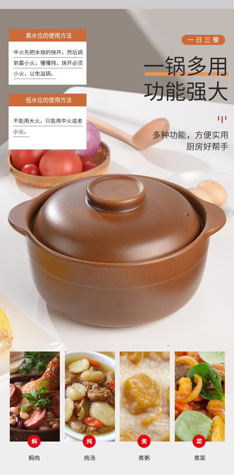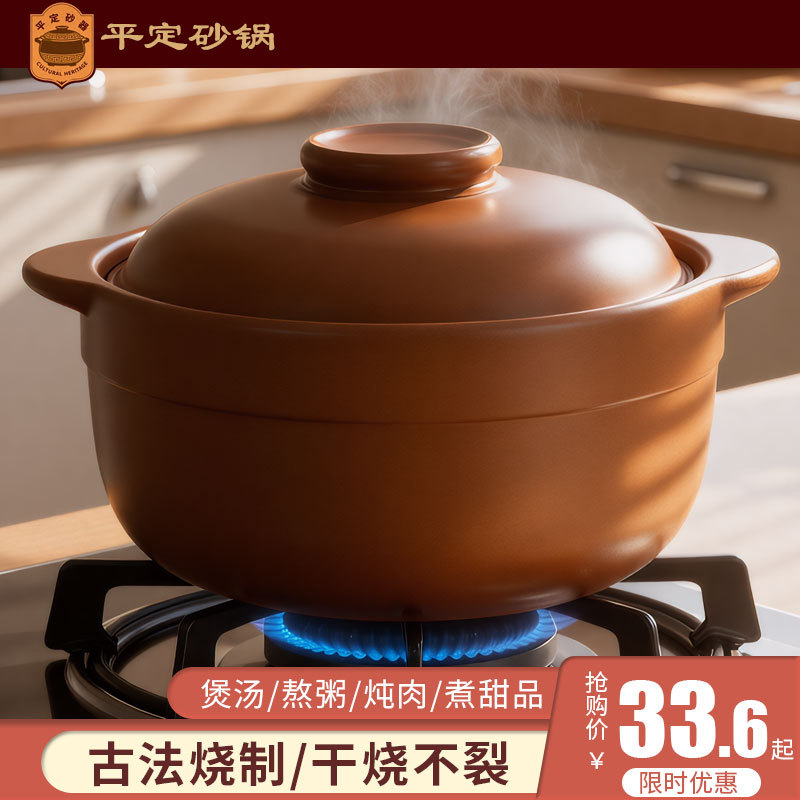 山西平定土鍋スープ家庭用ガスコンロ煮込み鍋ガス高温煮粥スープ内無釉土土鍋