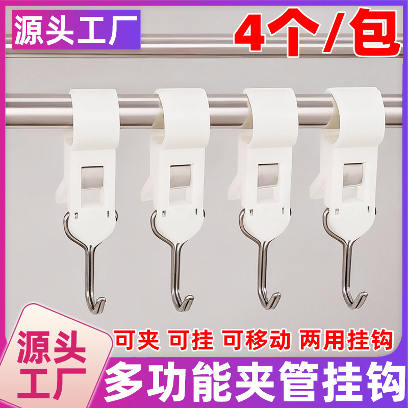 多功能夹管挂钩免打孔毛巾架厨房夹子可移动穿管塑料挂钩4个装