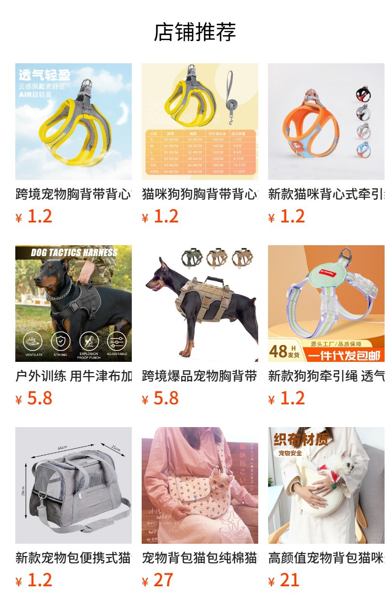 クロスボーダーペットハーネス、ベスト型犬用リード、反射犬用リード、猫用リード、犬用チェーン、犬用ロープ。
