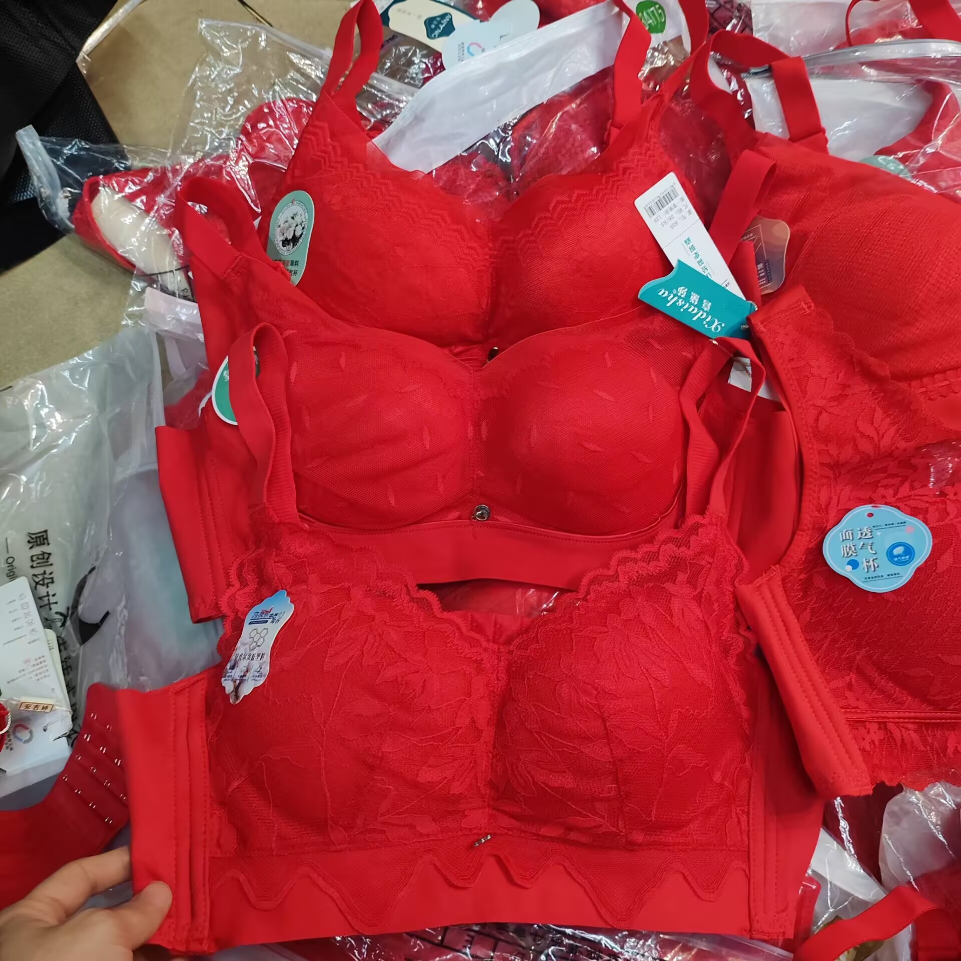 大紅色のブラジャー、34-40サイズ、大紅色のプッシュアップ型、ノンワイヤー、脇の肉を寄せ集める、快適な大紅色のブラジャー