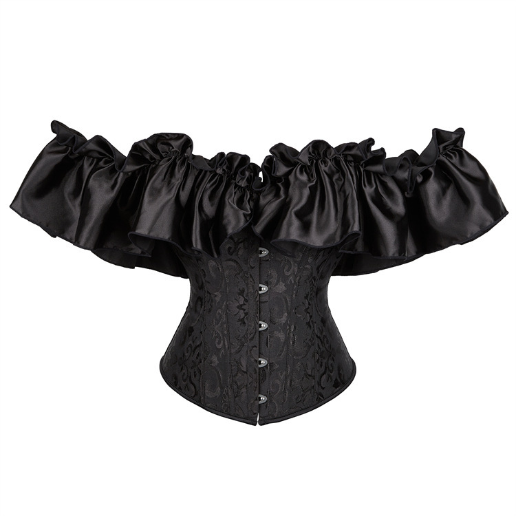Corset新型レトロレースの魚骨シェイプアップ上着一字肩ベルトの泡袖が胸の骨服に集まっています。