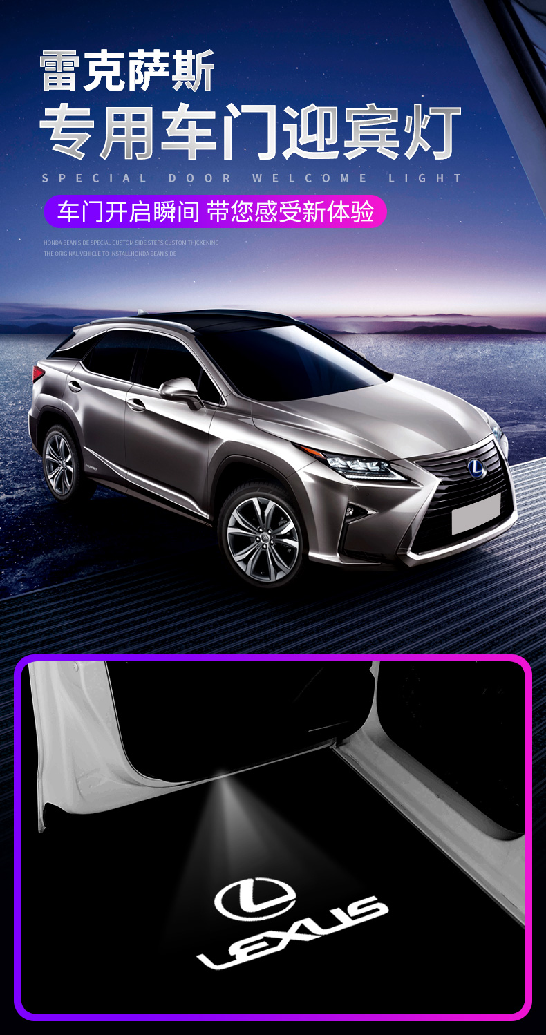 五代迎賓灯ドア灯レーザー投影灯自動車led装飾灯通用改造灯ドア迎賓灯