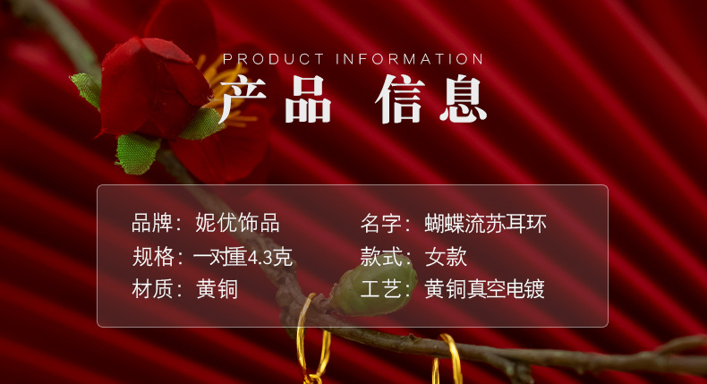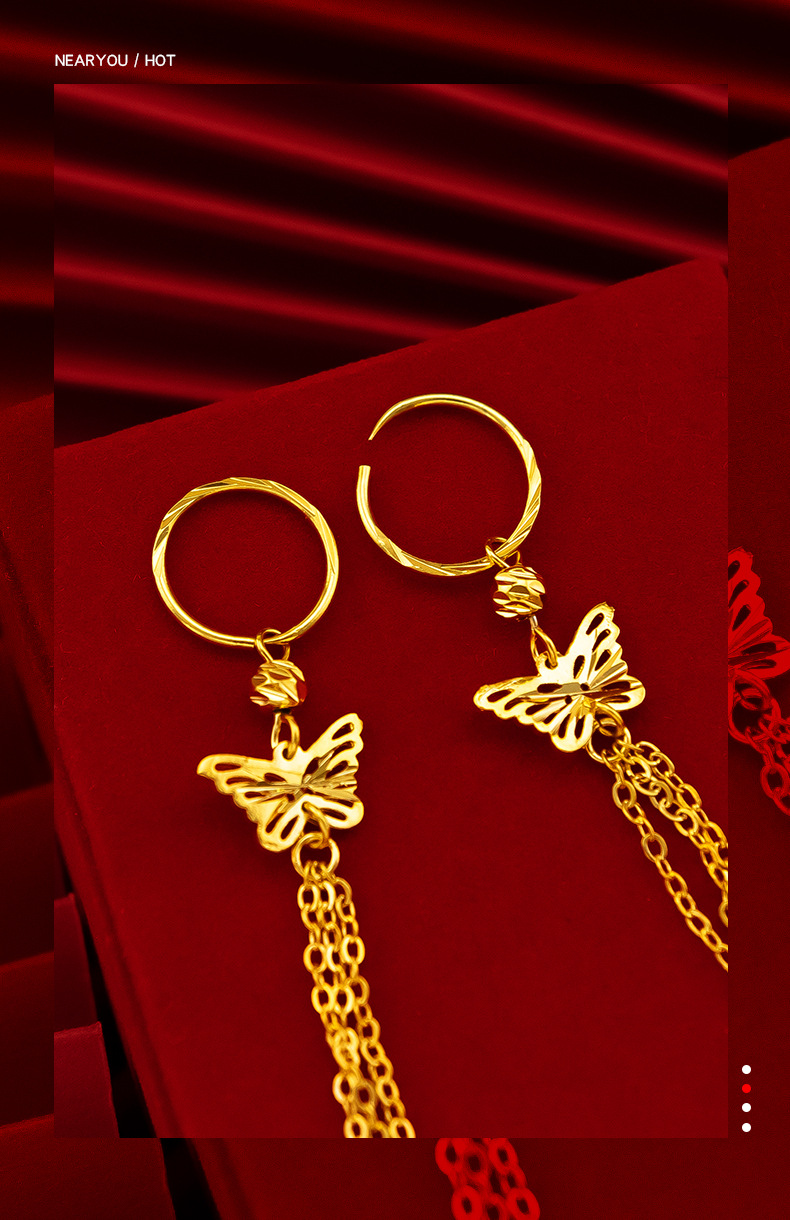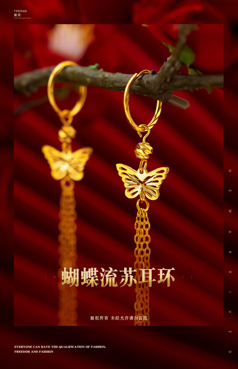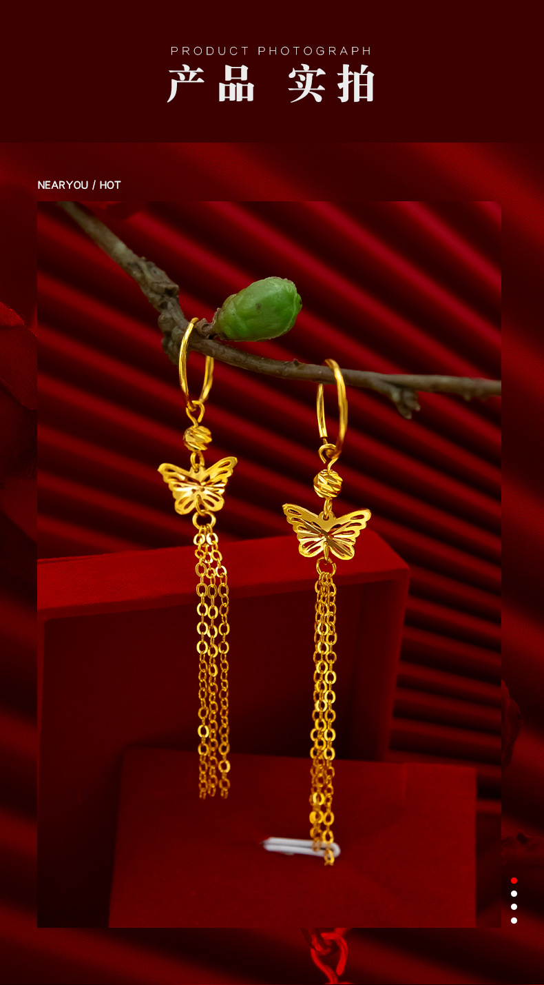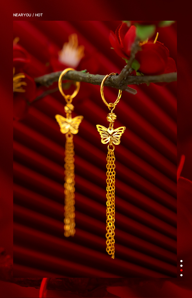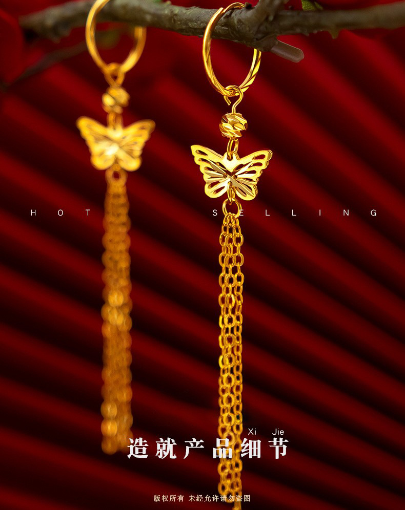 金メッキ女性結婚祝い蝶イヤリングベトナム沙金ファッション民族風レトロ蝶流蘇イヤリングピアス