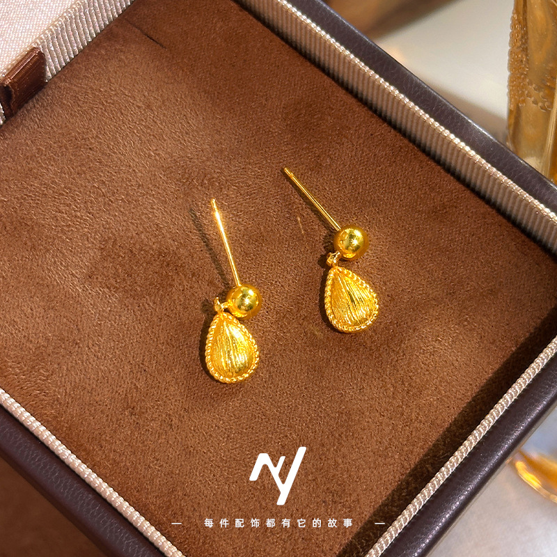 越南沙金轻奢小众拉丝水滴耳钉高保色新款高级感女耳钉耳饰批发