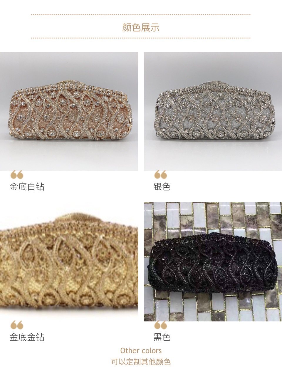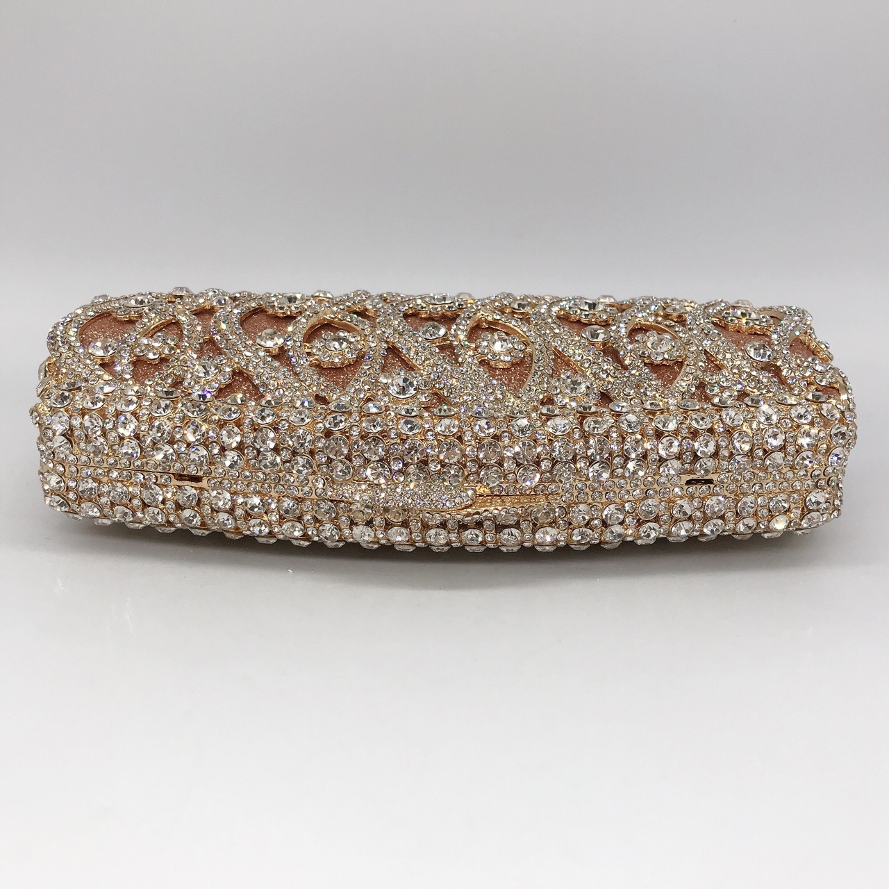 晚宴包 | 跨境镶钻晚宴包缕空金属水钻手拿包欧美外贸宴会满钻女包链条纯色,20*10*5㎝,放iPhone 6,包包净重0.63㎏