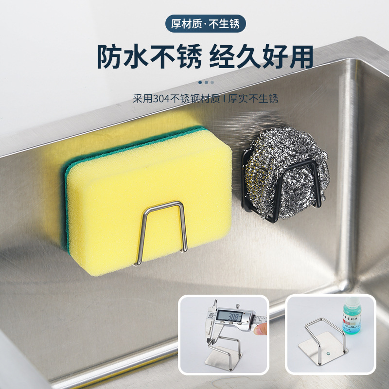 不锈钢海绵架免打孔厨房水池钢丝球抹布海绵沥水架收纳置物架子