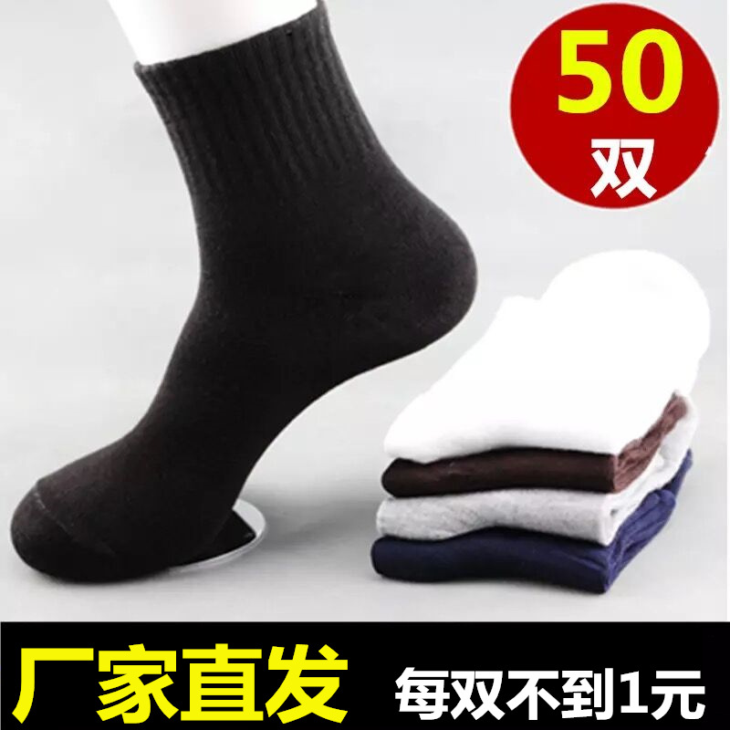 50足の靴下の男性の春夏の中筒の靴下の黒と白の安い仕事の靴下は使い捨てで20足のストッキングを洗って卸売りします。