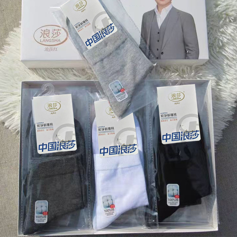 浪莎の靴下の男性の100% 純綿の夏の薄いタイプの男性は単独で包装して独立して中筒の短い薄い靴下を包装します。