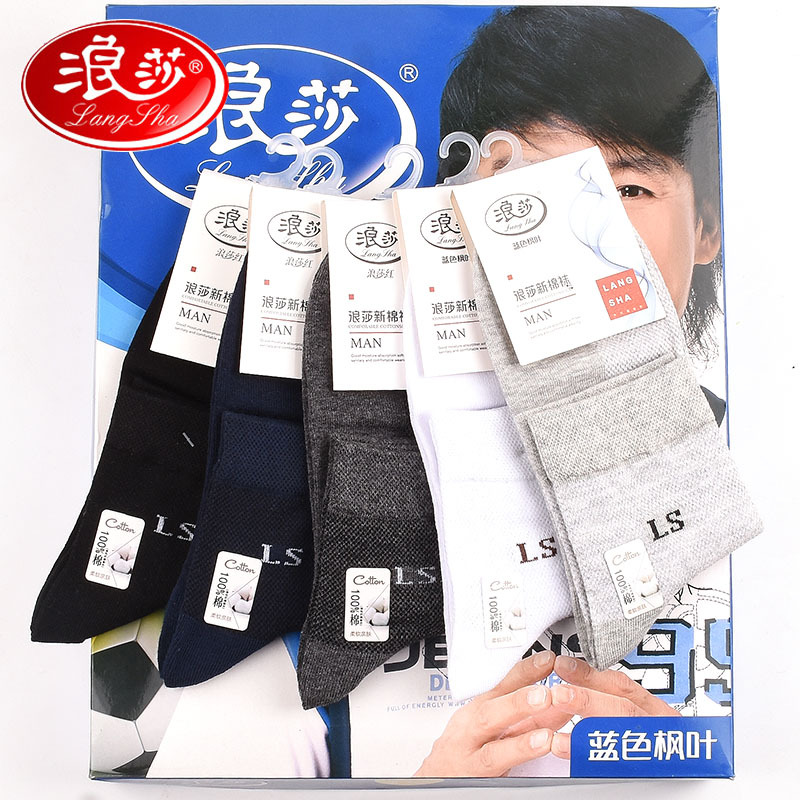 浪莎男性100% 純綿靴下単独包装四季中筒靴下中厚タイプ防臭綿靴下男性シングル