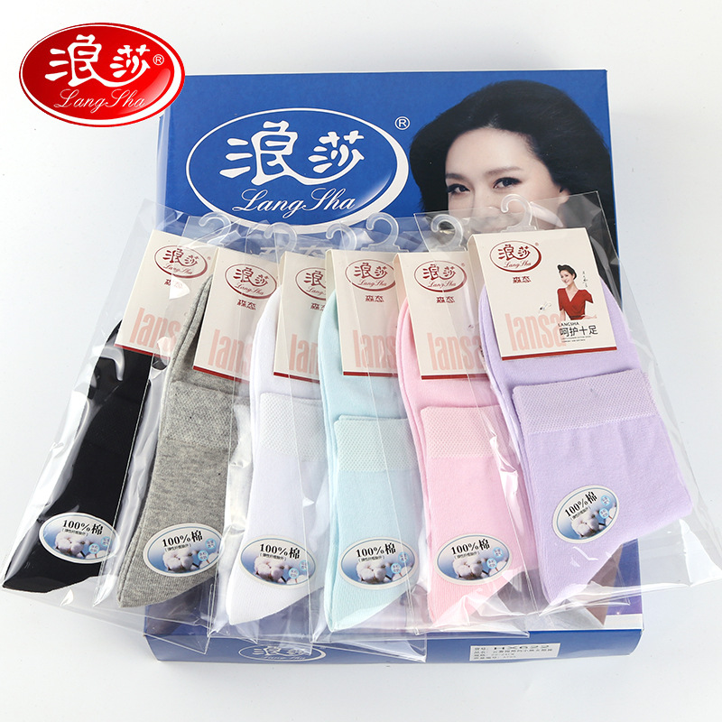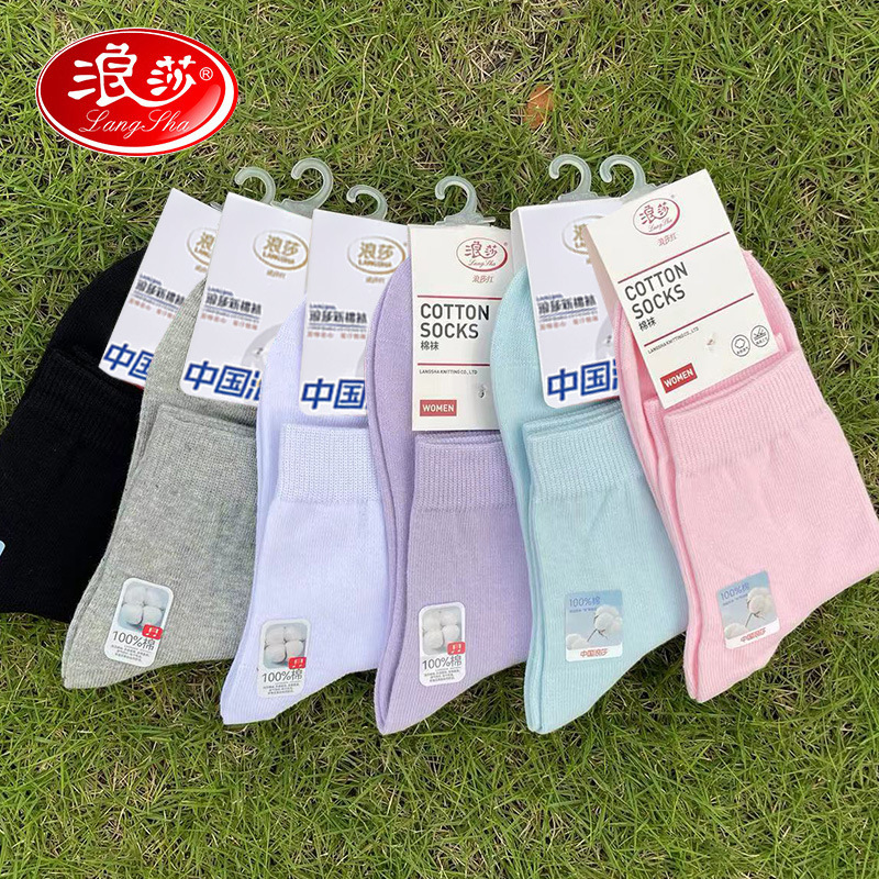 正品浪莎シングル独立包装靴下レディース100% 綿中筒靴下春秋冬タイプ四季女性綿靴下