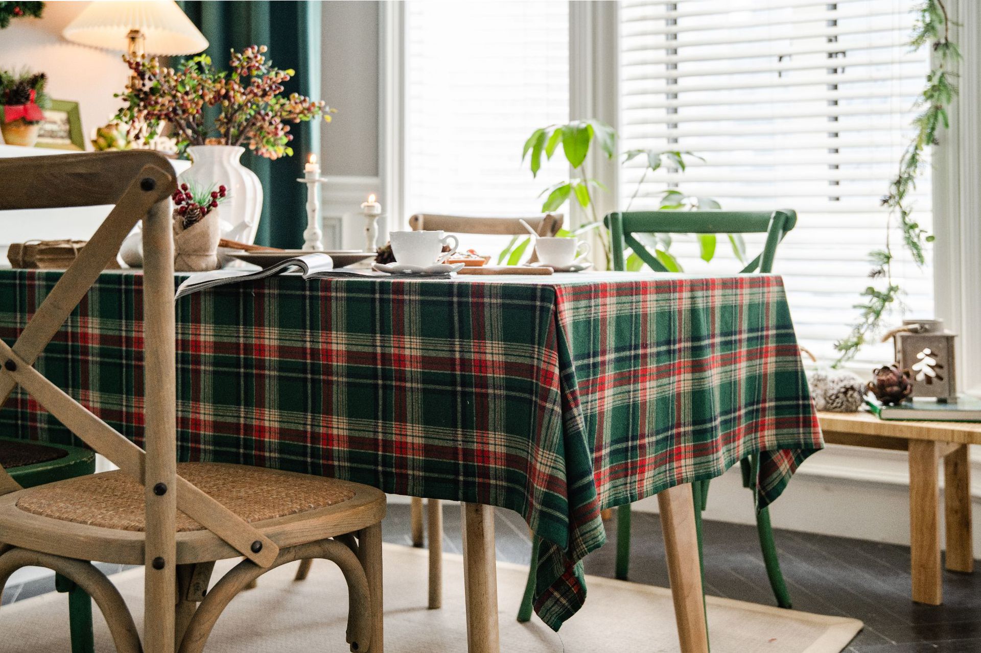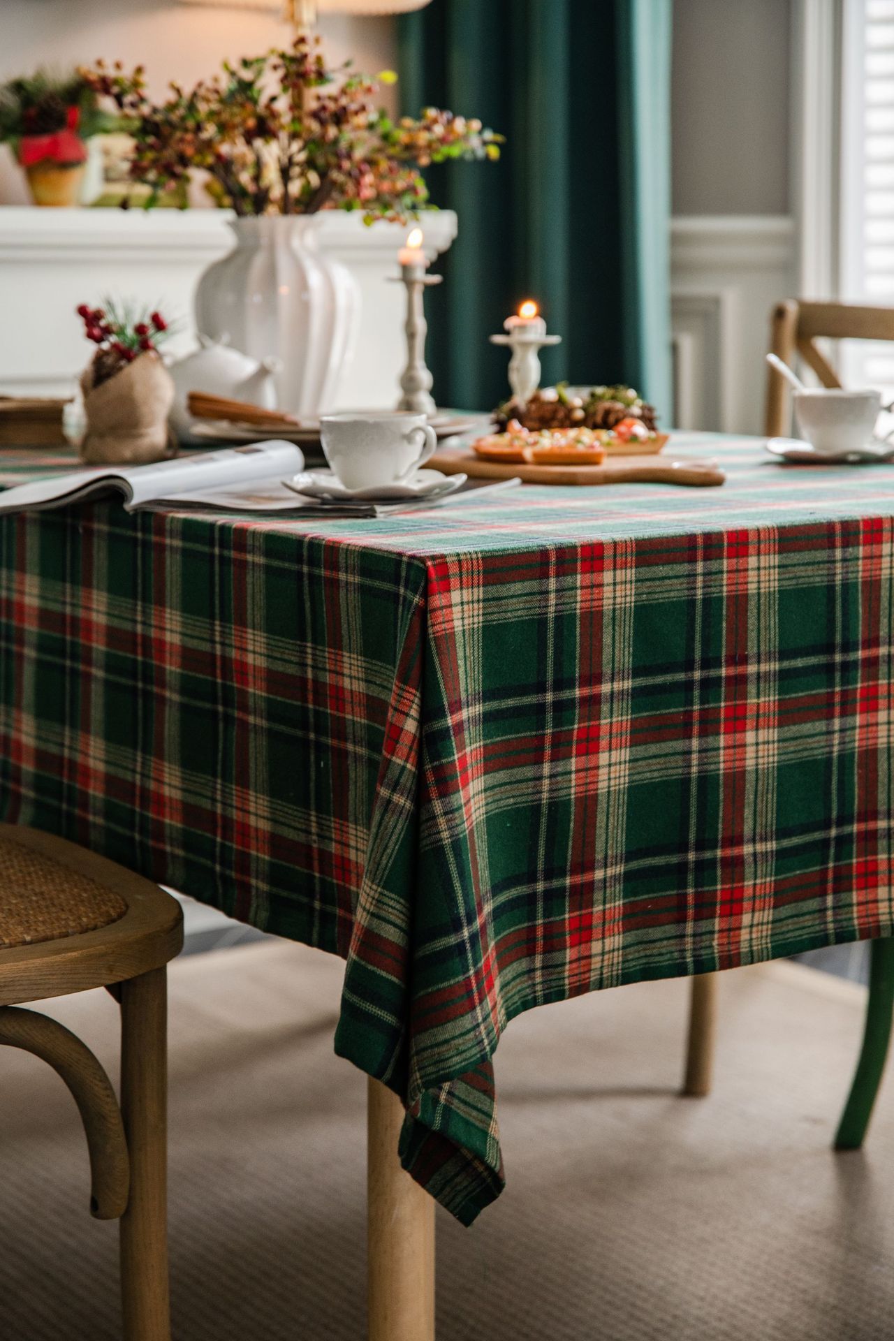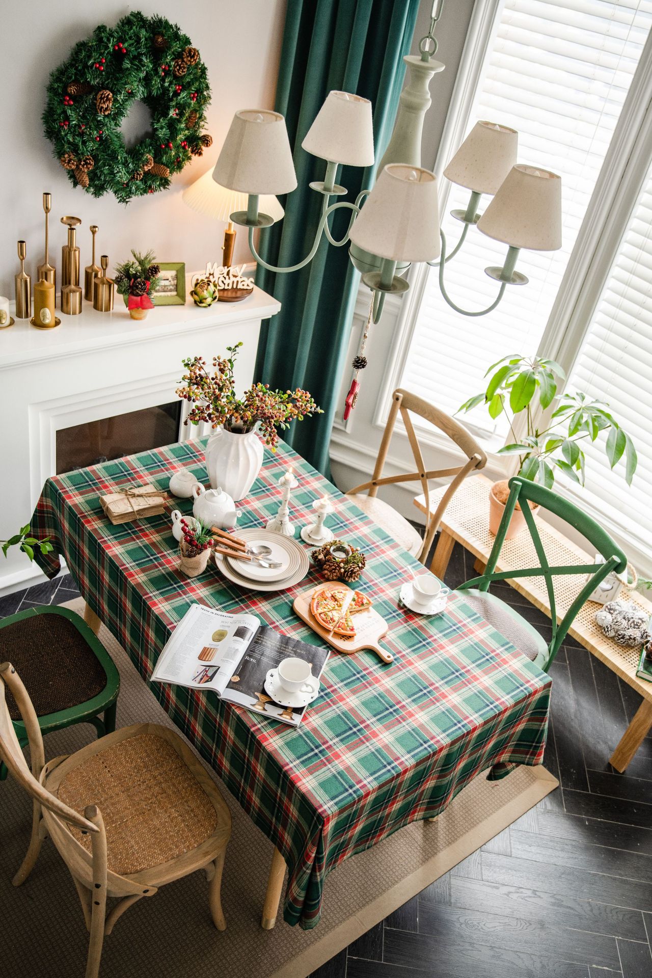 跨境美式复古圣诞格子桌布棉麻布艺餐桌布氛围感装饰布餐桌布盖布