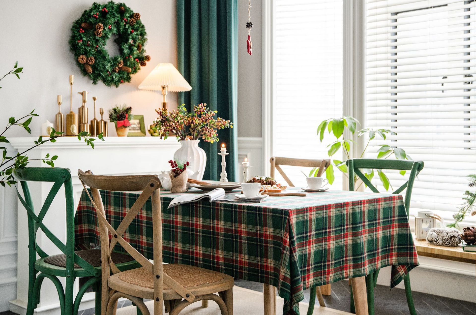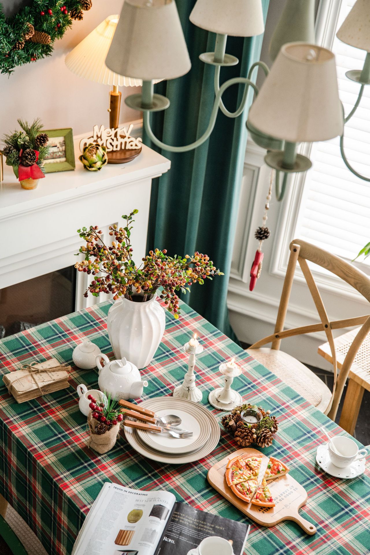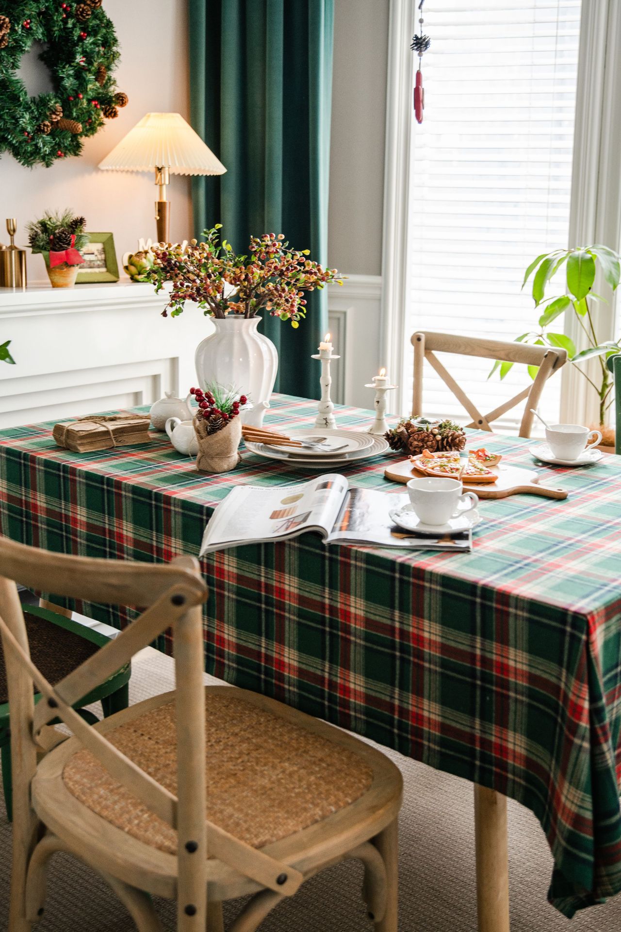 跨境美式复古圣诞格子桌布棉麻布艺餐桌布氛围感装饰布餐桌布盖布