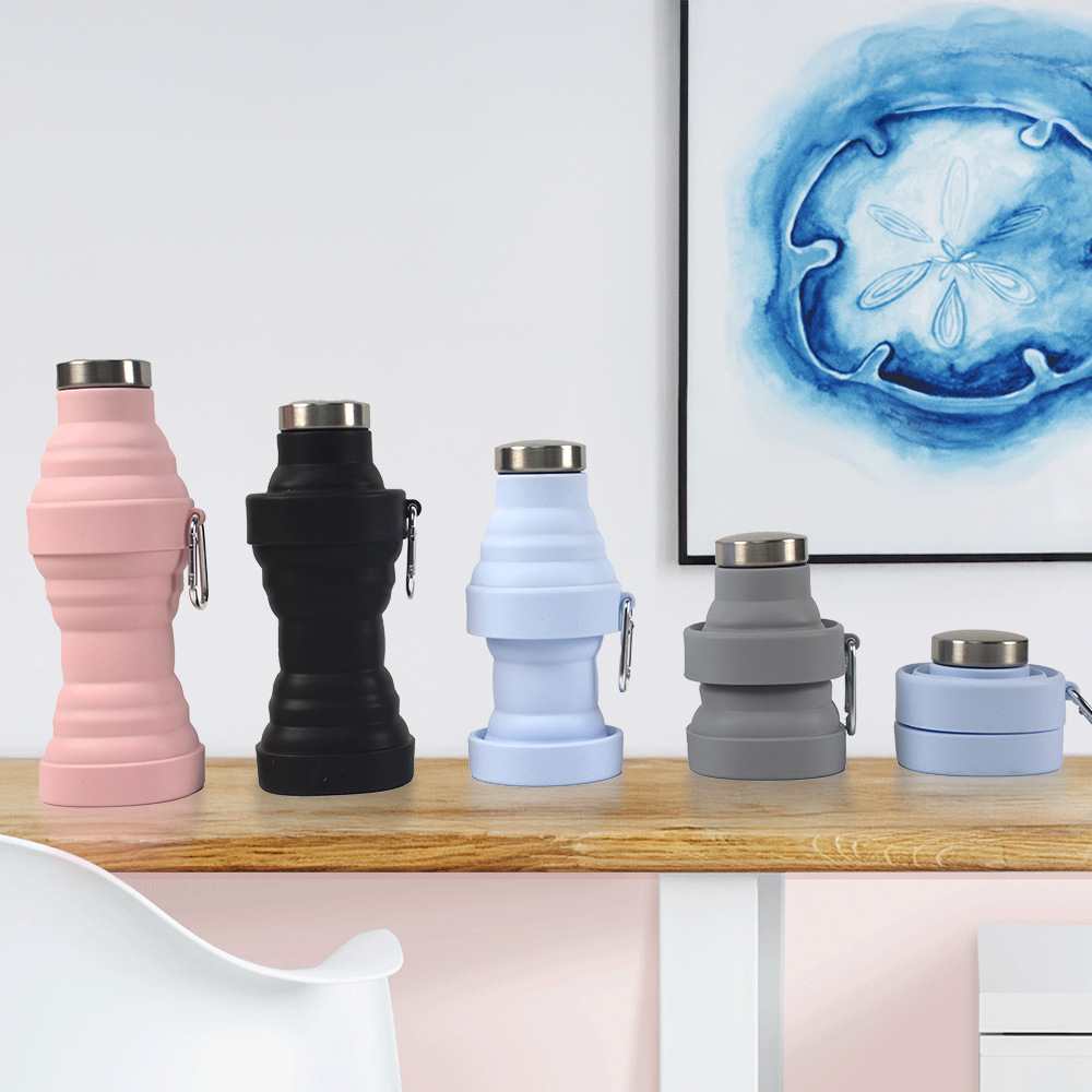 跨境新款硅胶水瓶食品级便携水壶运动waterbottle圆形可折叠水壶