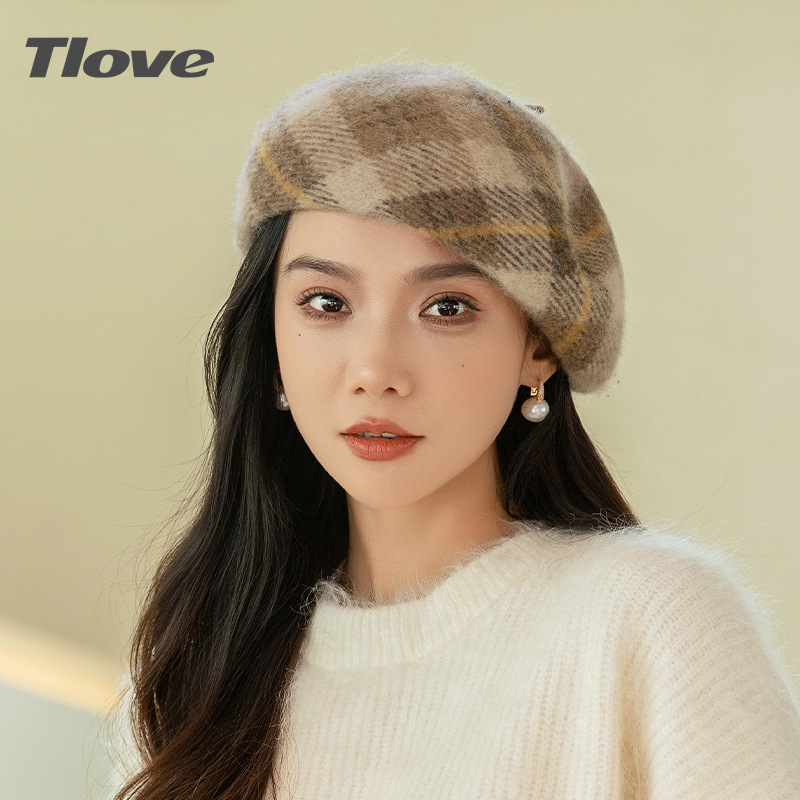 9488秋冬ファッション百合女性クラシック格子帽子冬格子模様保温レトロ色合わせ帽子ベレー帽