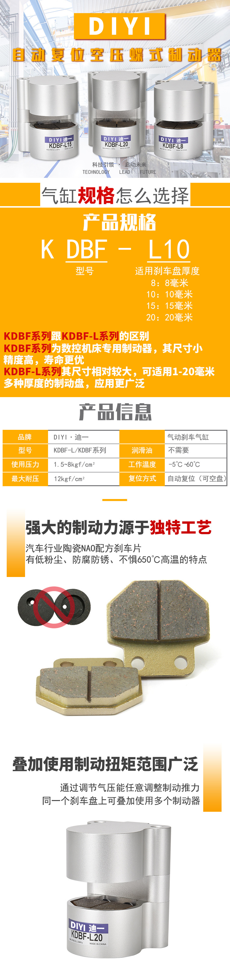 気動ブレーキシリンダーDBF-L8/10/15/20 nc旋盤ブレーキ工業空圧ディスクブレーキ