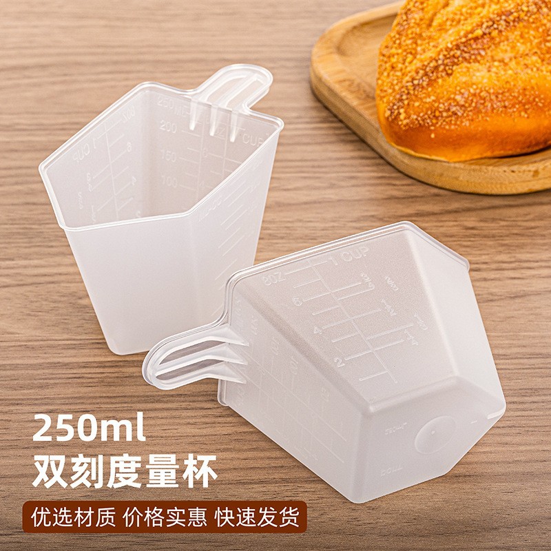 キッチン250ml食品グレードプラスチック計量スプーン透明ダブルスケール計量カップベーキングツールショートハンドルスプーン工場卸売
