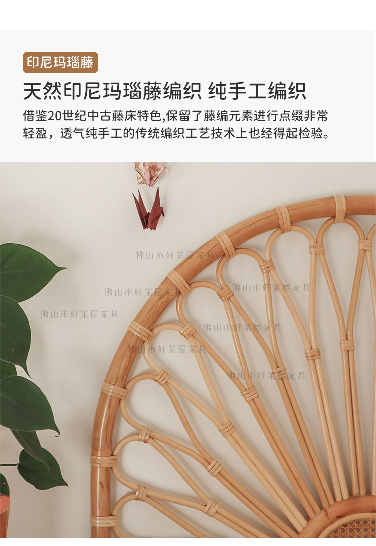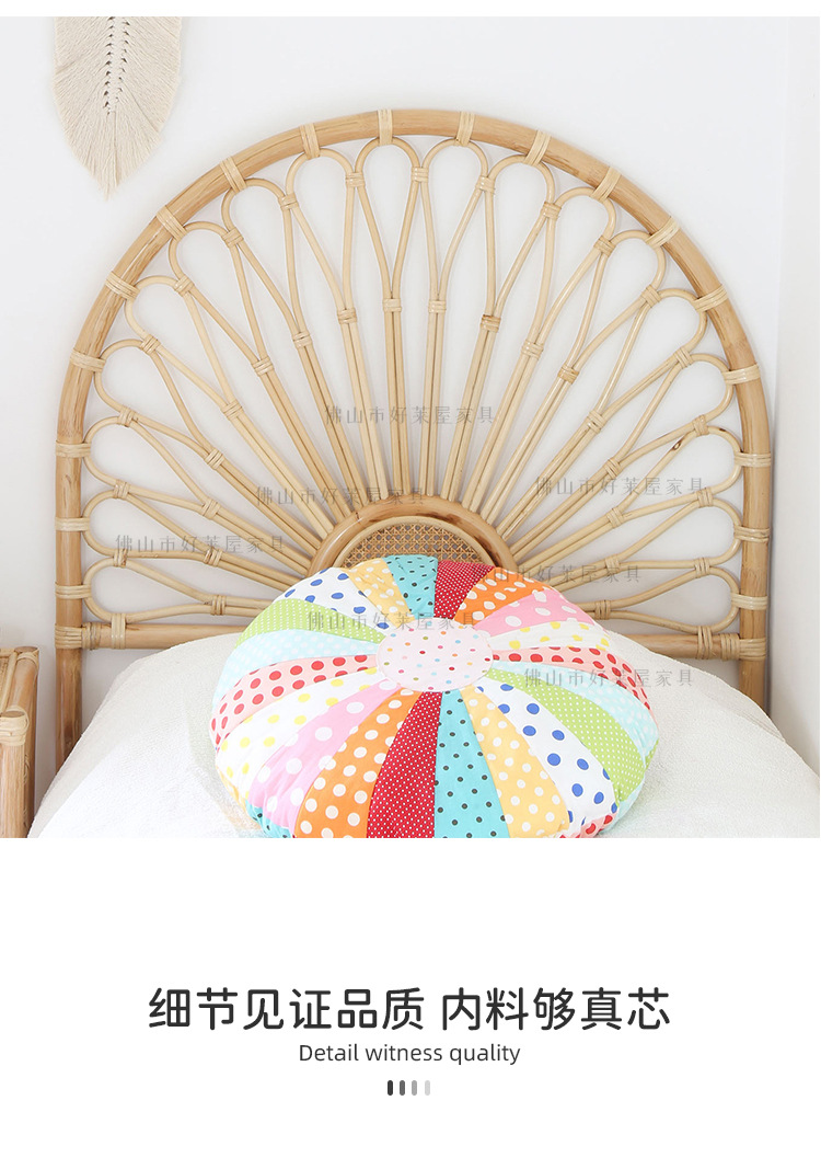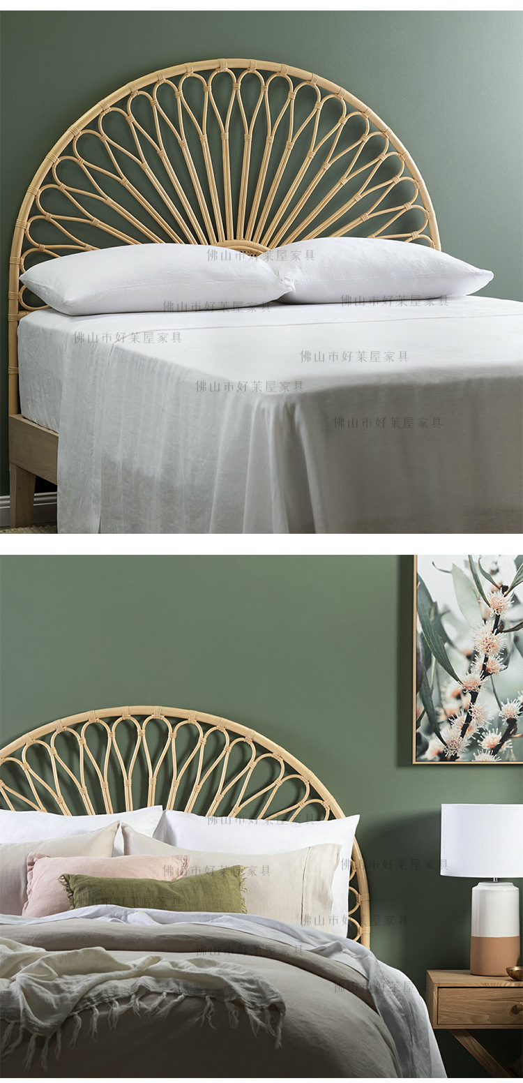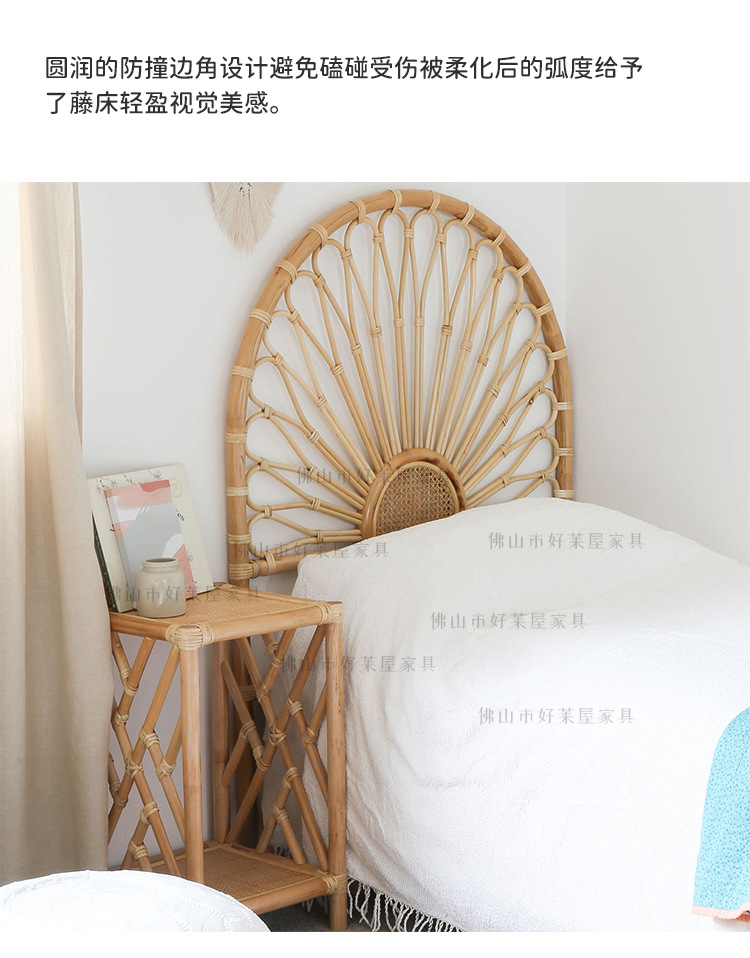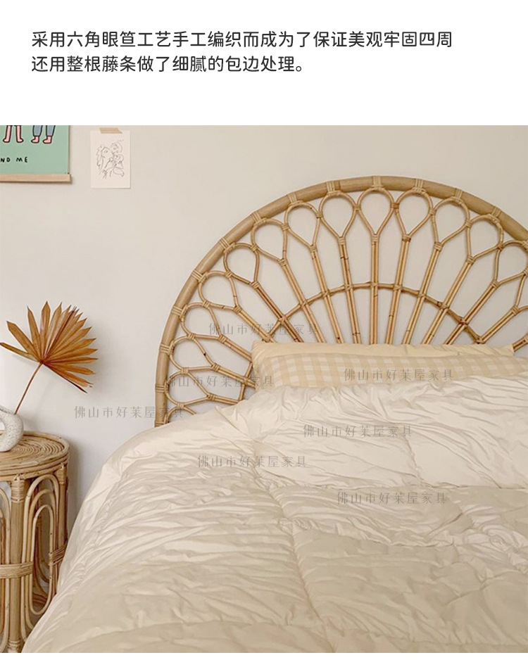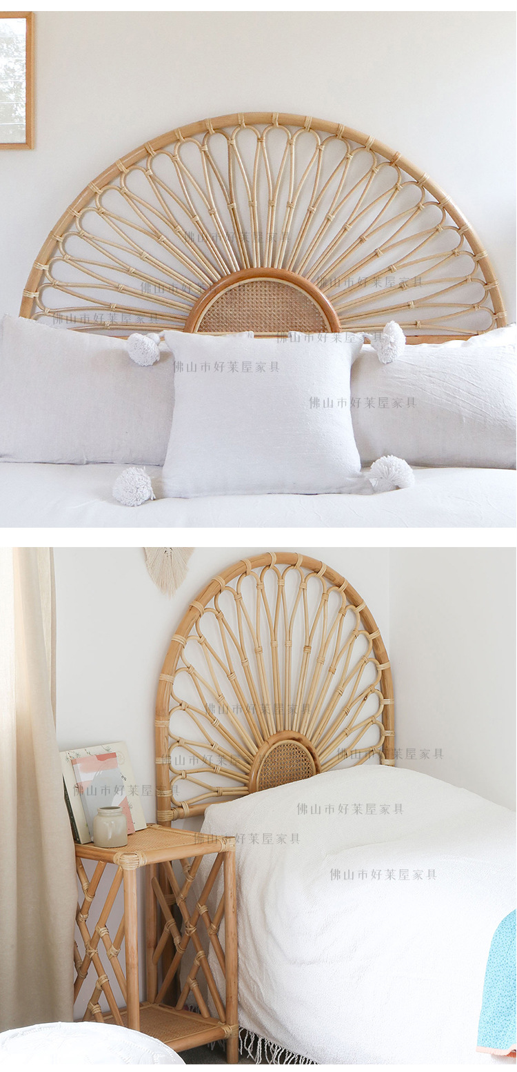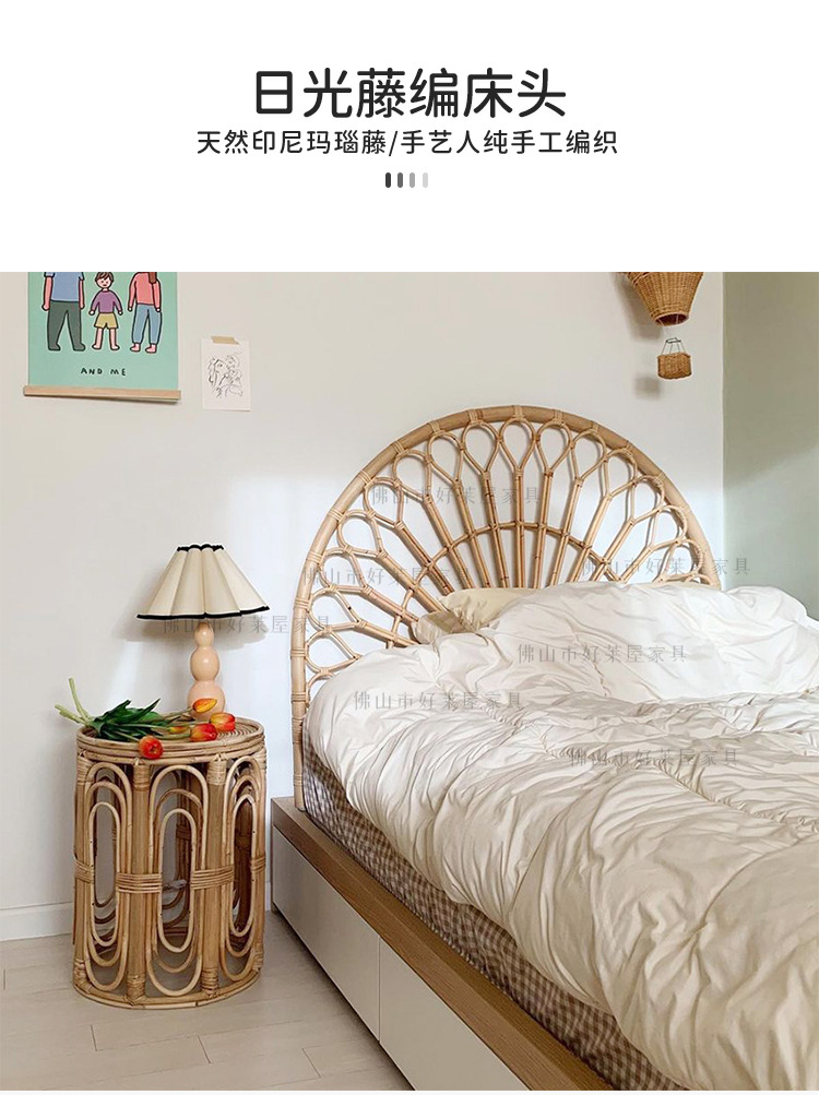 北欧籐編みベッドヘッドボード民泊見本間背景床置き飾りインスタ天然籐ベッド背もたれ