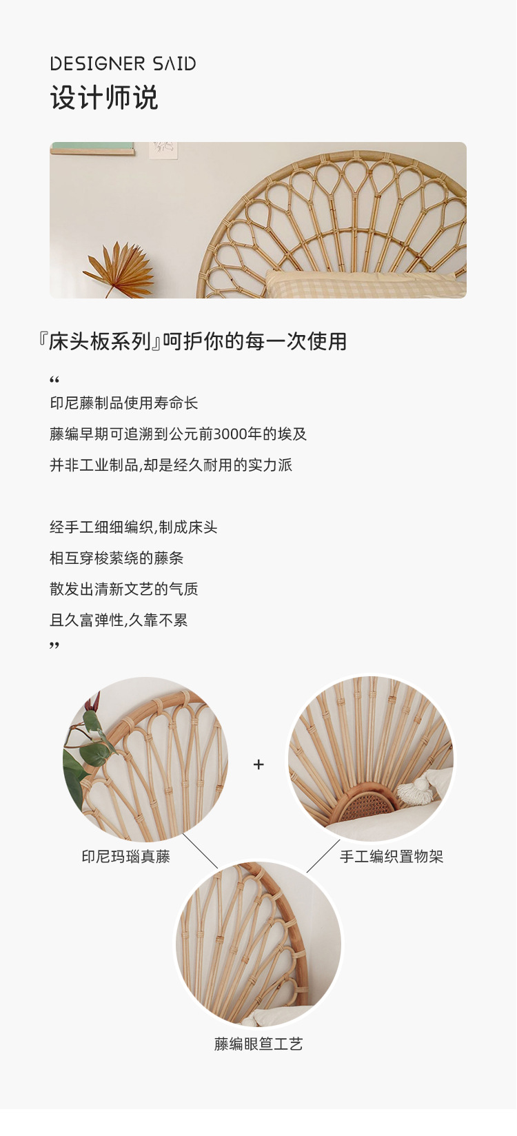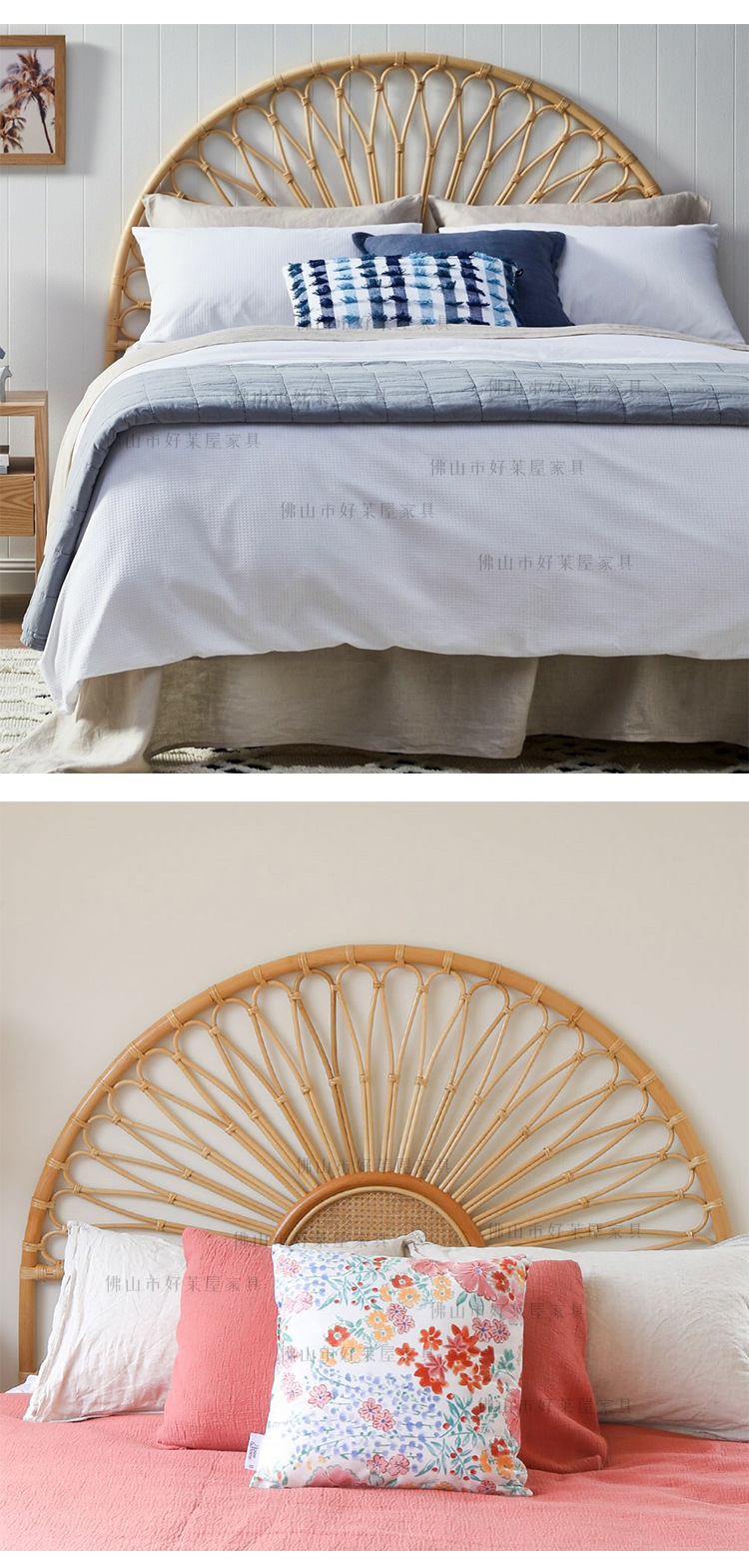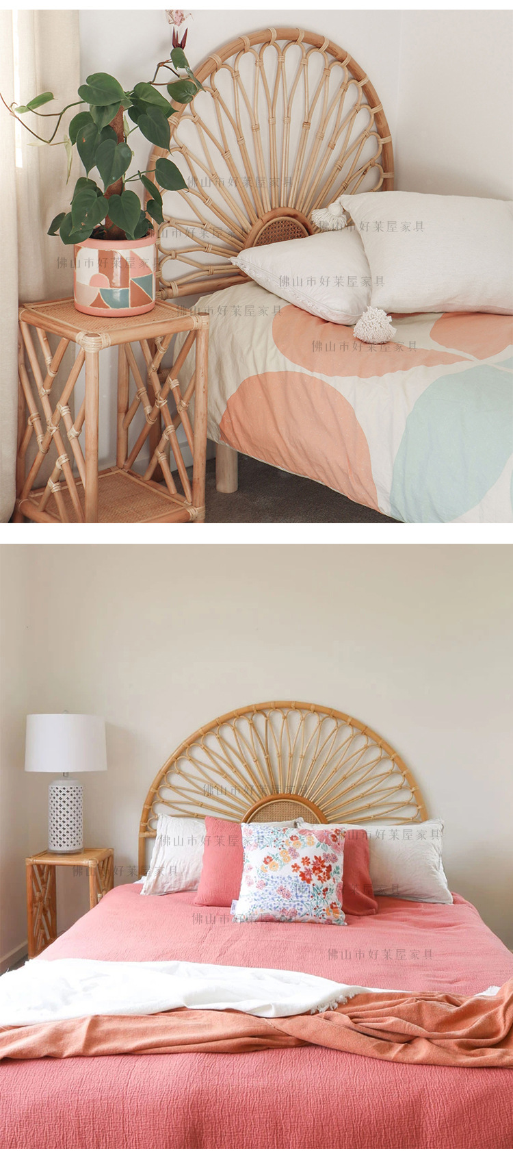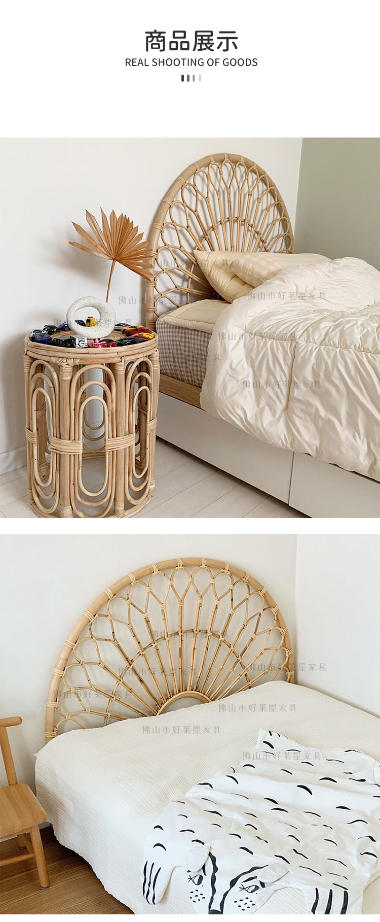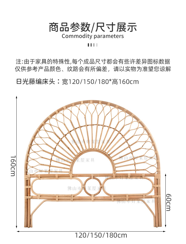 北欧籐編みベッドヘッドボード民泊見本間背景床置き飾りインスタ天然籐ベッド背もたれ