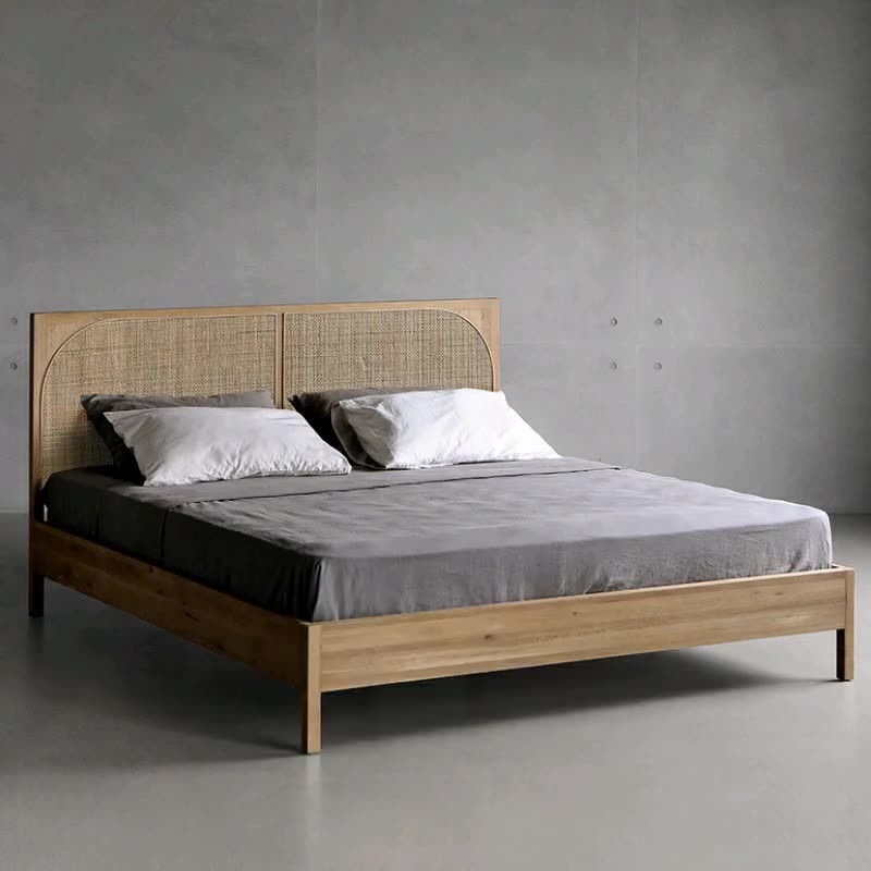 現代の非常にシンプルな木製ベッド日本式寂風藤編大ベッド1.8主臥ダブルベッド民宿復古1.5家具