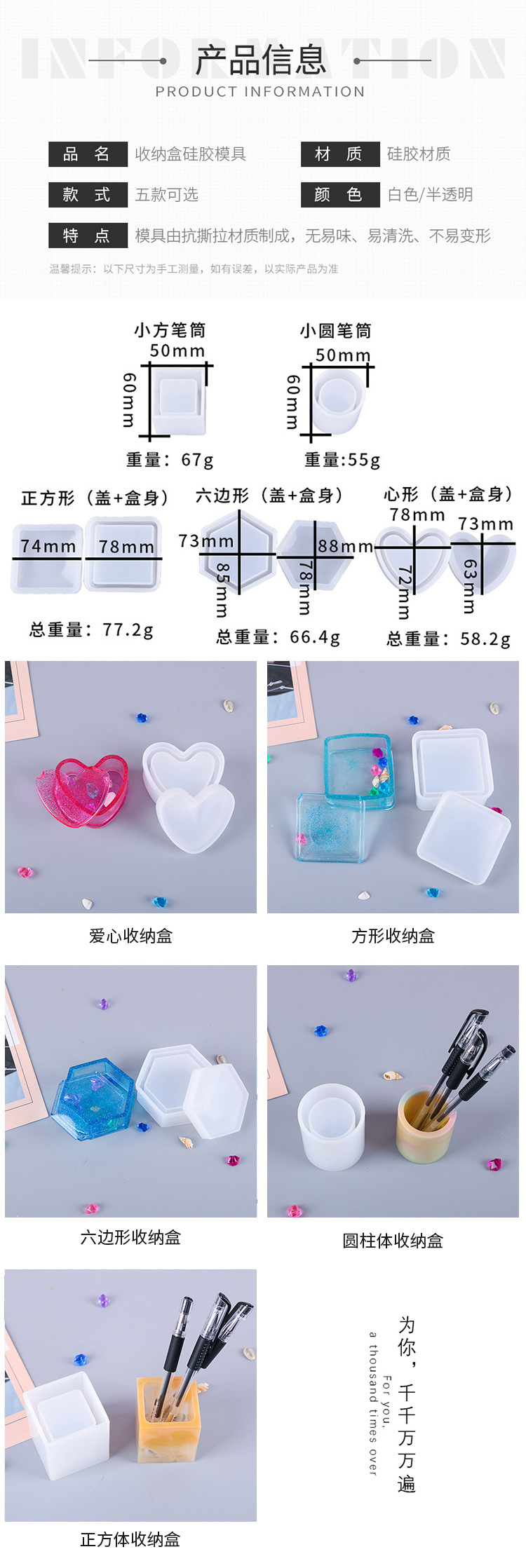 仕様 正方形のペンホルダー,円筒ペン立て,ハート型収納ボックス,四角い収納ボックス,六角形収納ボックス