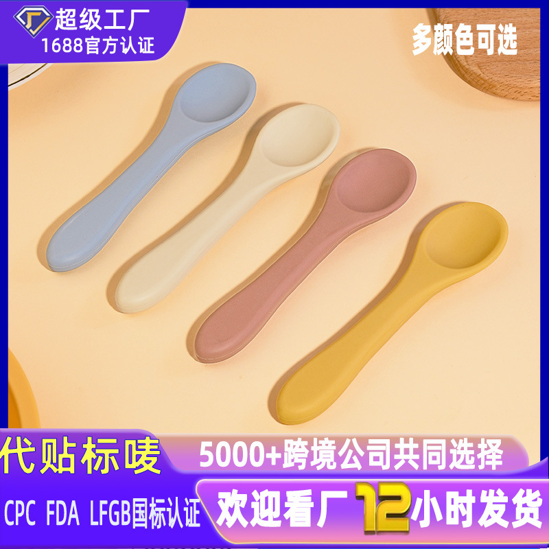 子供のシリコンのフォークのスプーンの食品級の長い柄のスプーンの赤ちゃんの補助食のフォークのスプーンのシリコンの柔らかい頭のスプーンの補助食のシリコンのスプーン