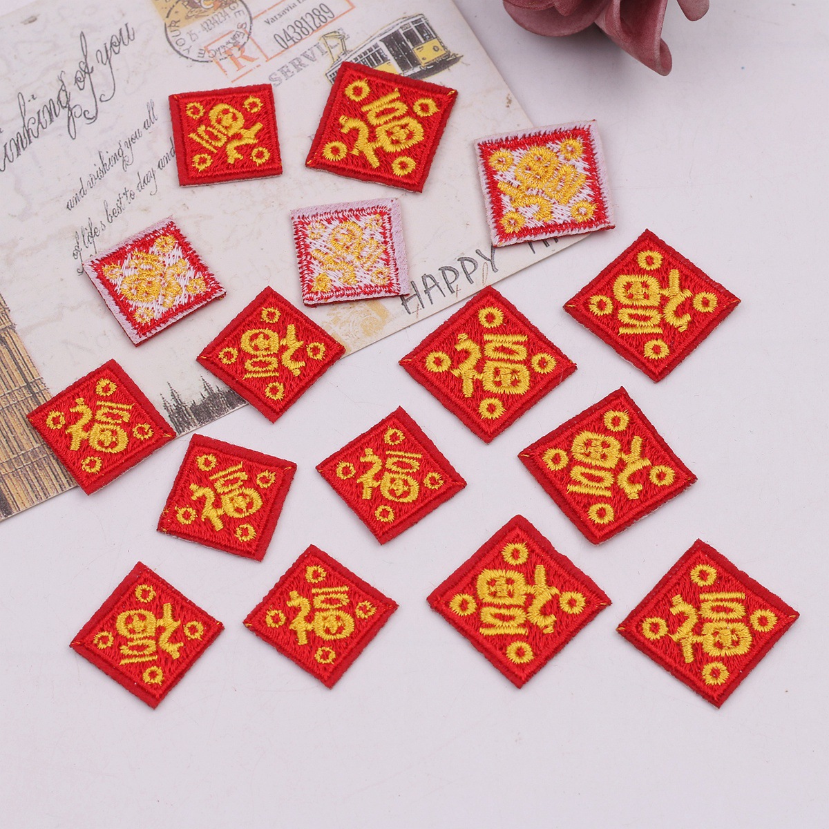 新款红色新年发夹发饰材料配件铜钱福字刺绣布贴服装鞋帽辅料补丁