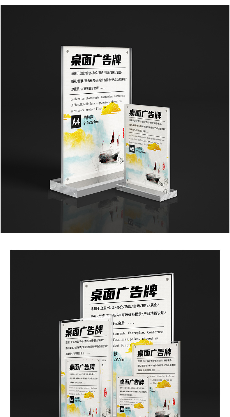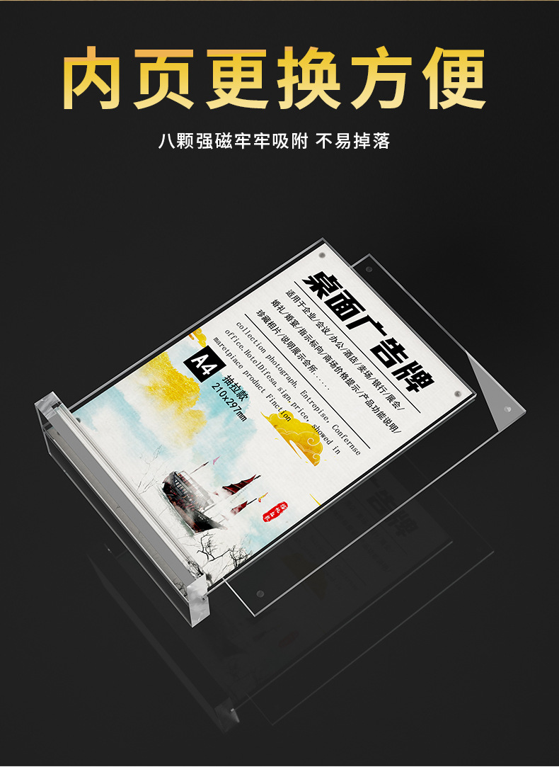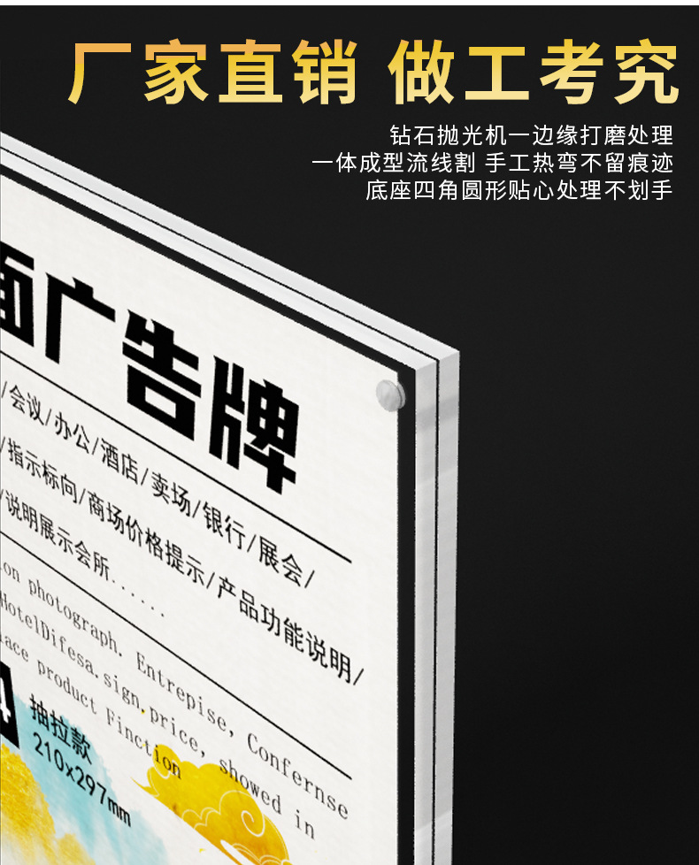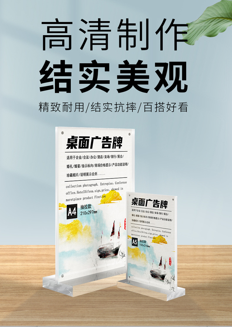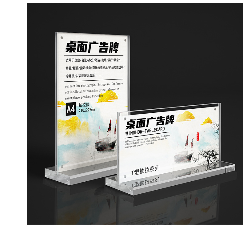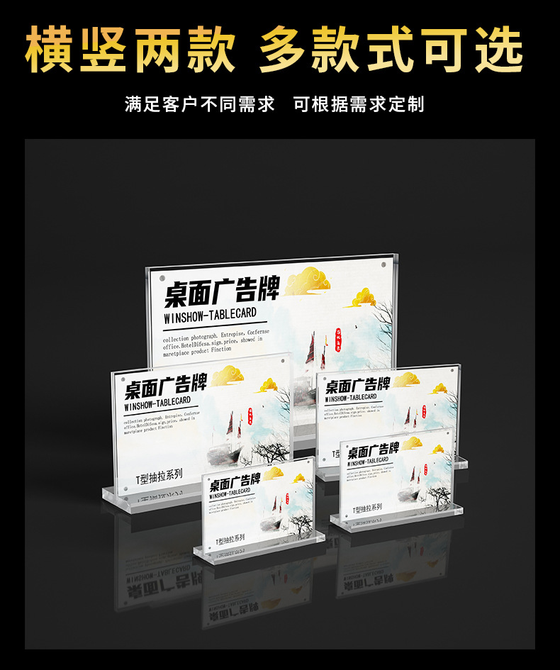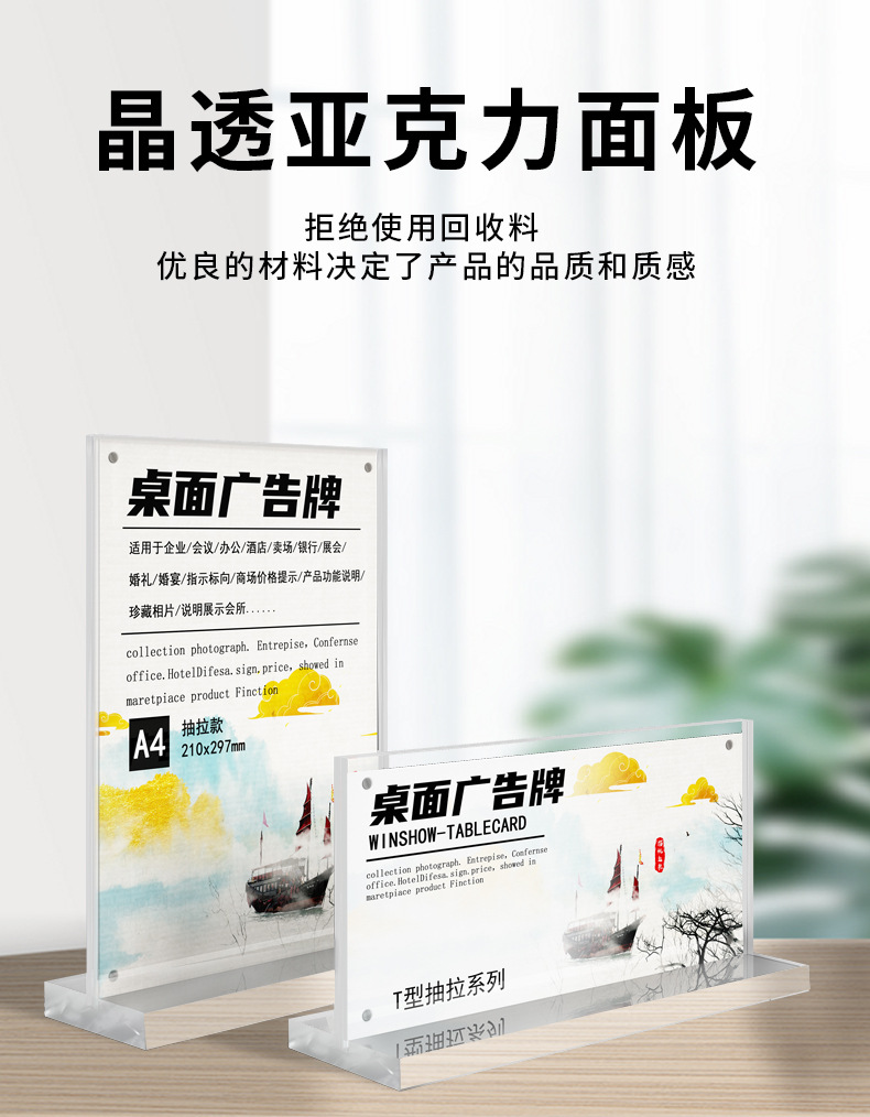 跨境台卡亚克力台卡A4桌牌A5立牌抽拉展示牌个性创意