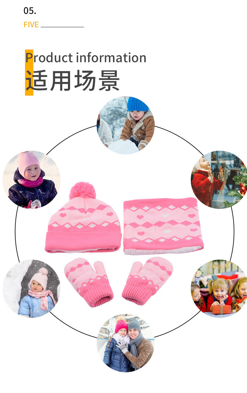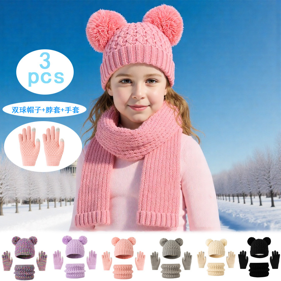 亚马逊希音外贸儿童针织帽子围巾手套秋冬加绒保暖冬季毛线帽加厚