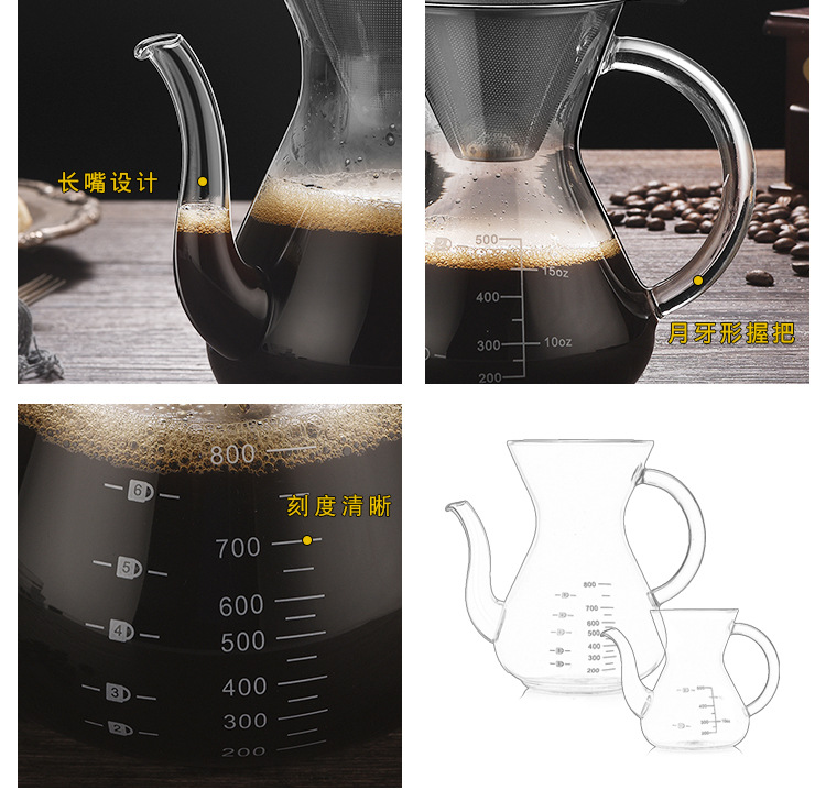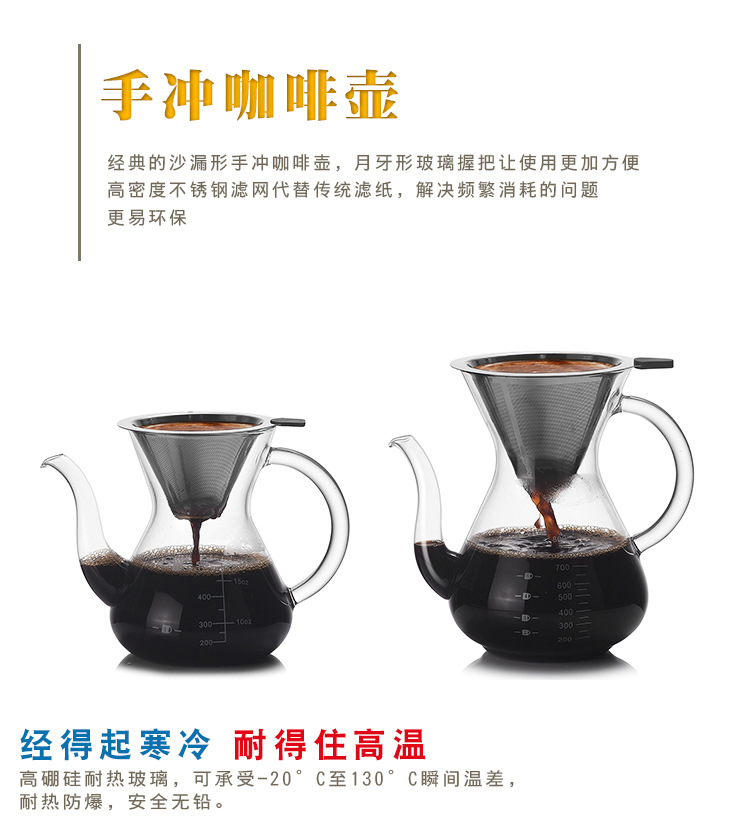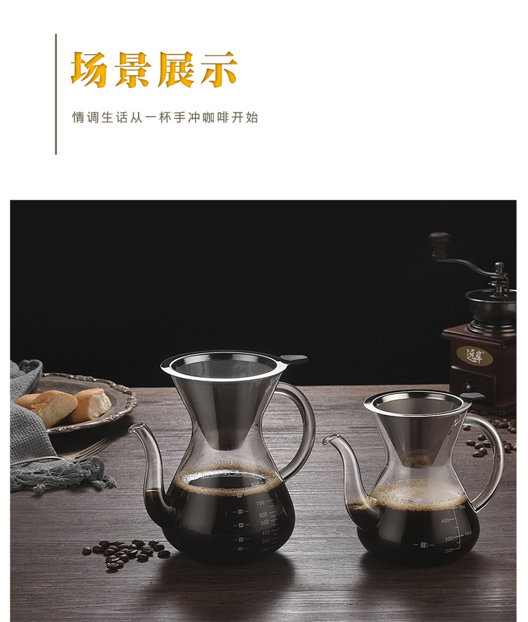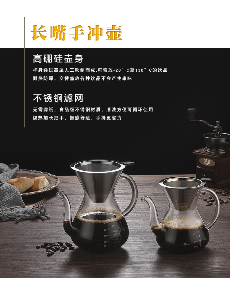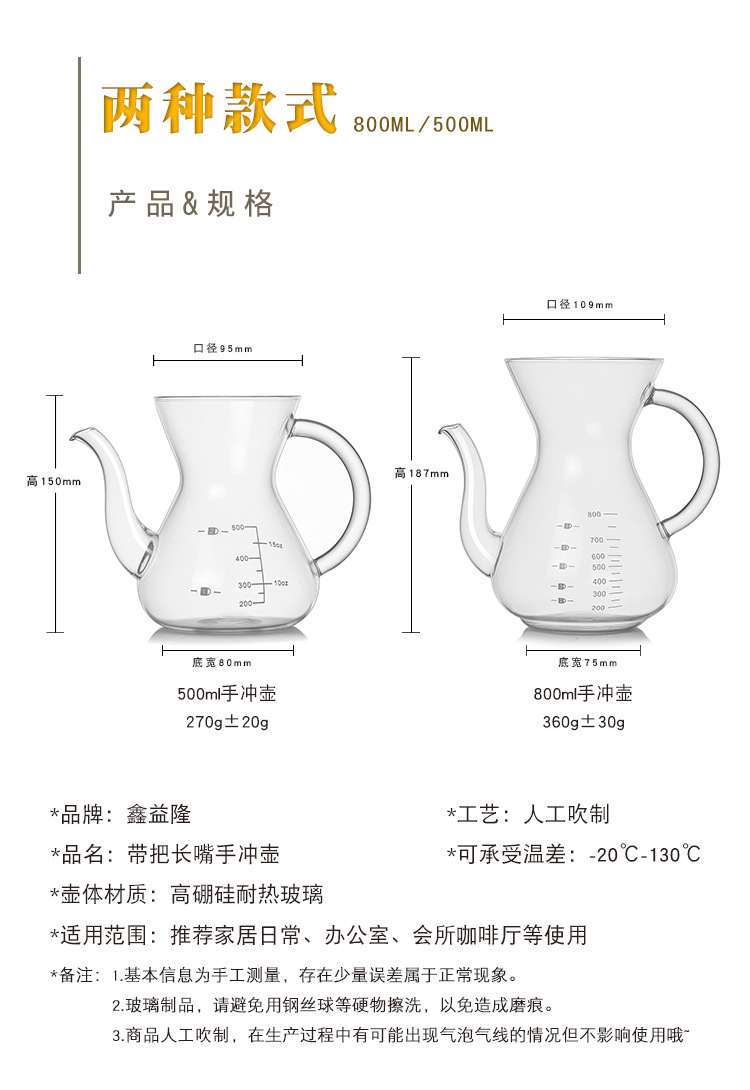 500ML手冲壶(270g±20g):口径9.5cm,壶高15cm,底径8cm;