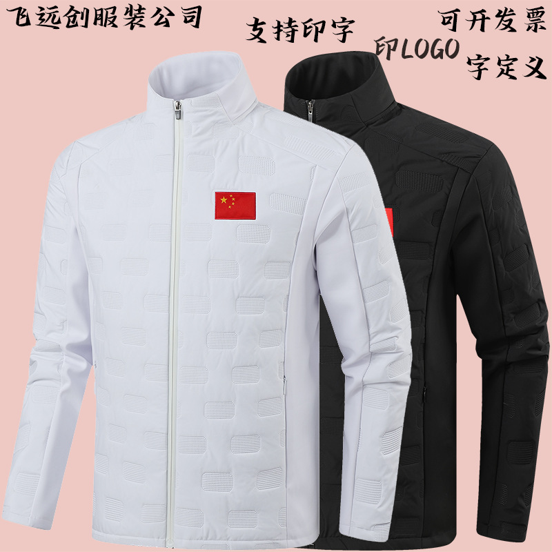 2025秋冬中国队轻质冲锋衣软壳开衫登山训练服加绒外套团体出场服