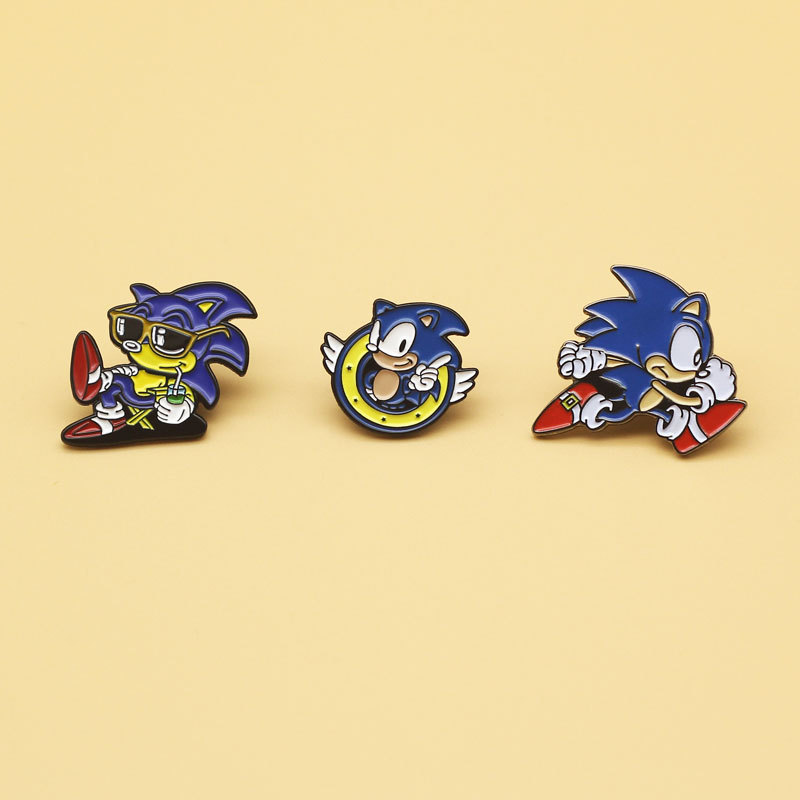 アニメハリネズミソニクバッジ速売通爆金アニメブローチ金属小物卸売り