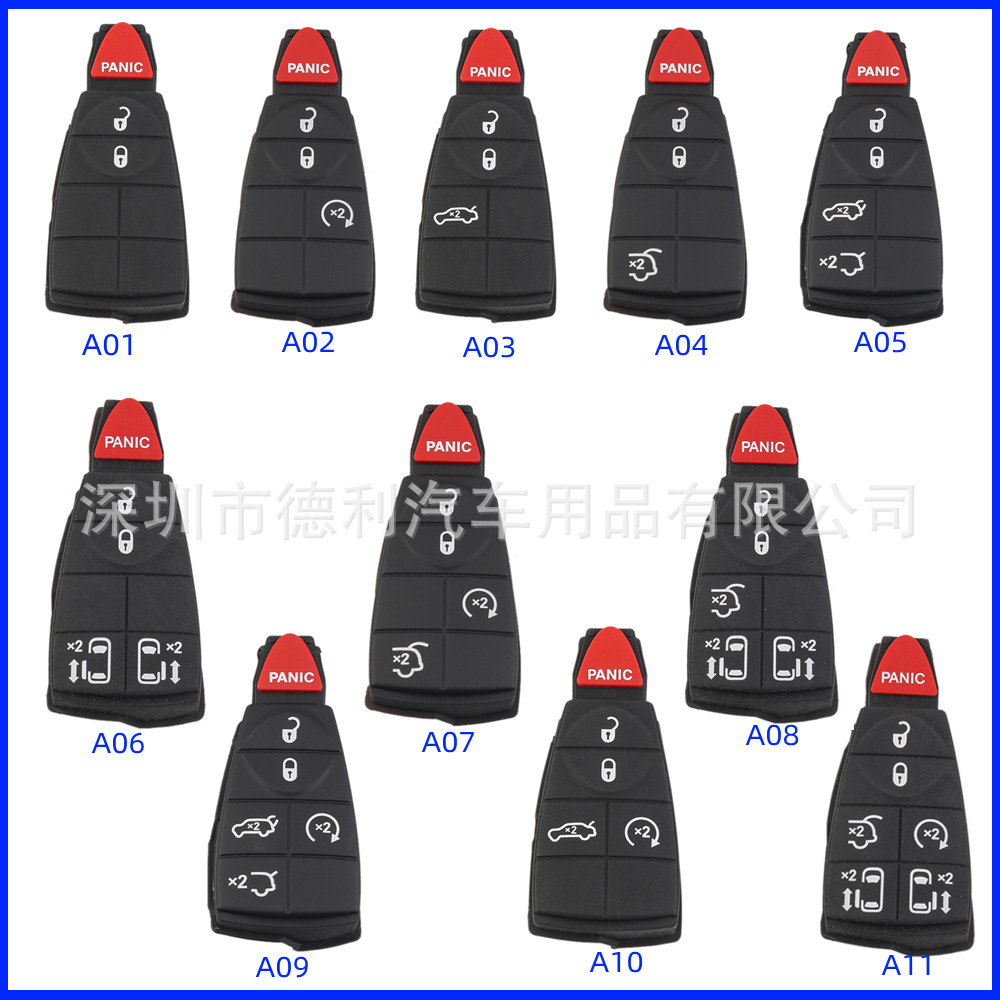 新型クライスラーのボタンの皮のシリコンパッドの自動車の鍵の殻のリモコンの殻の全ボタンの皮に適用します。