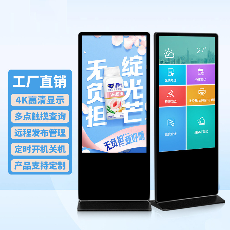 55/65/75/ 85inchインチ横型広告機、4K高精細ディスプレイ、フロアスタンド型タッチクエリーコンビネーションマシン、大画面