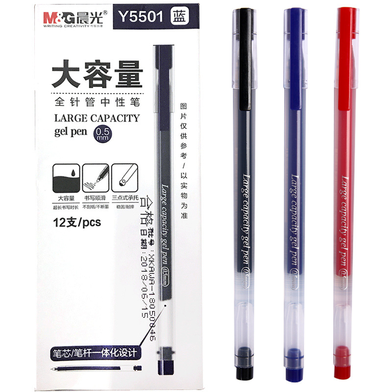 晨光中性笔大容量一体式0.5mm全针管速干水笔黑蓝红签字笔Y5501