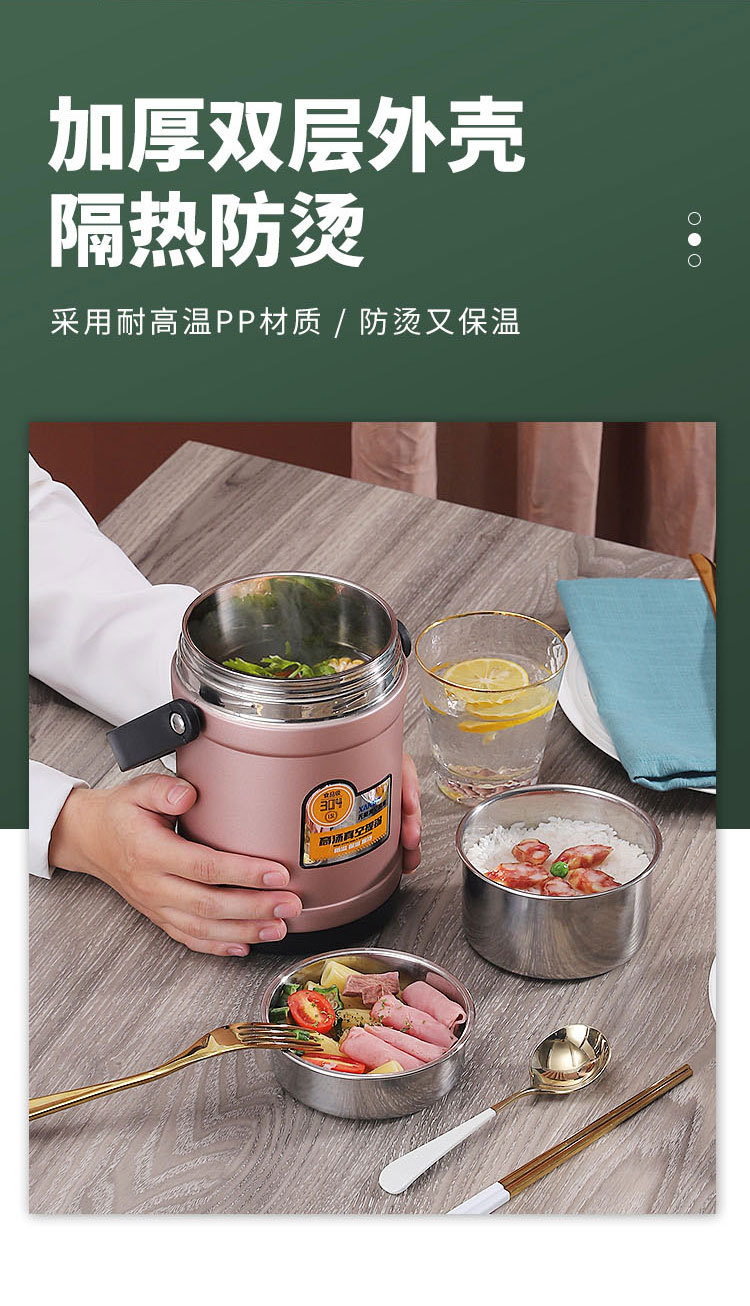ステンレス製断熱弁当箱、二層三層真空ポット、サラリーマン向け携帯弁当箱、大容量弁当箱