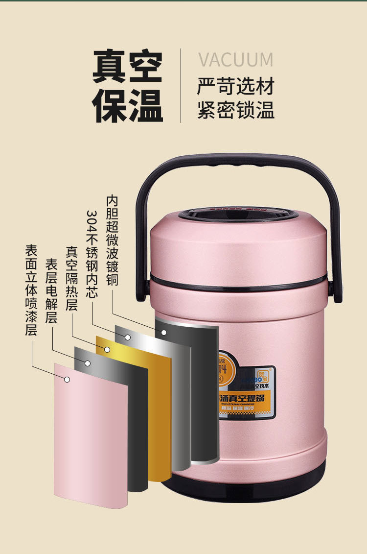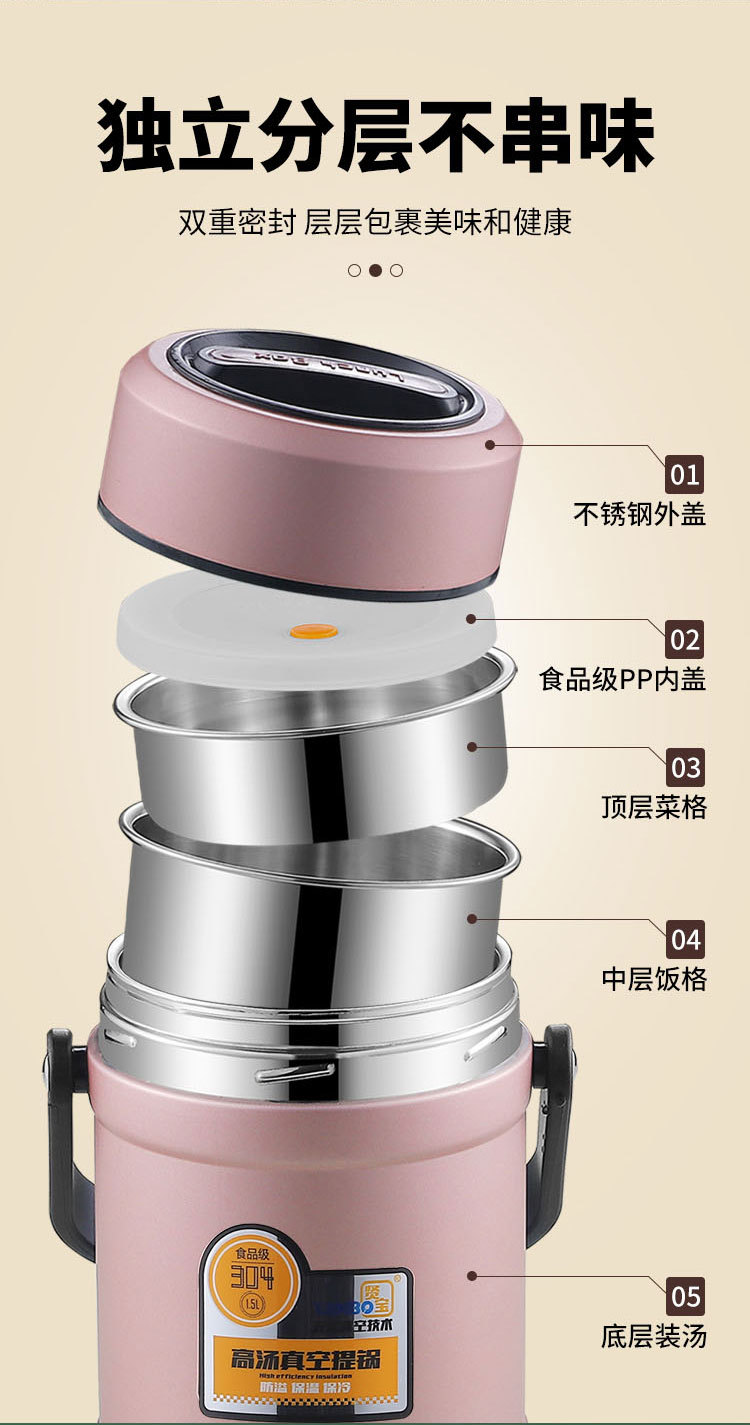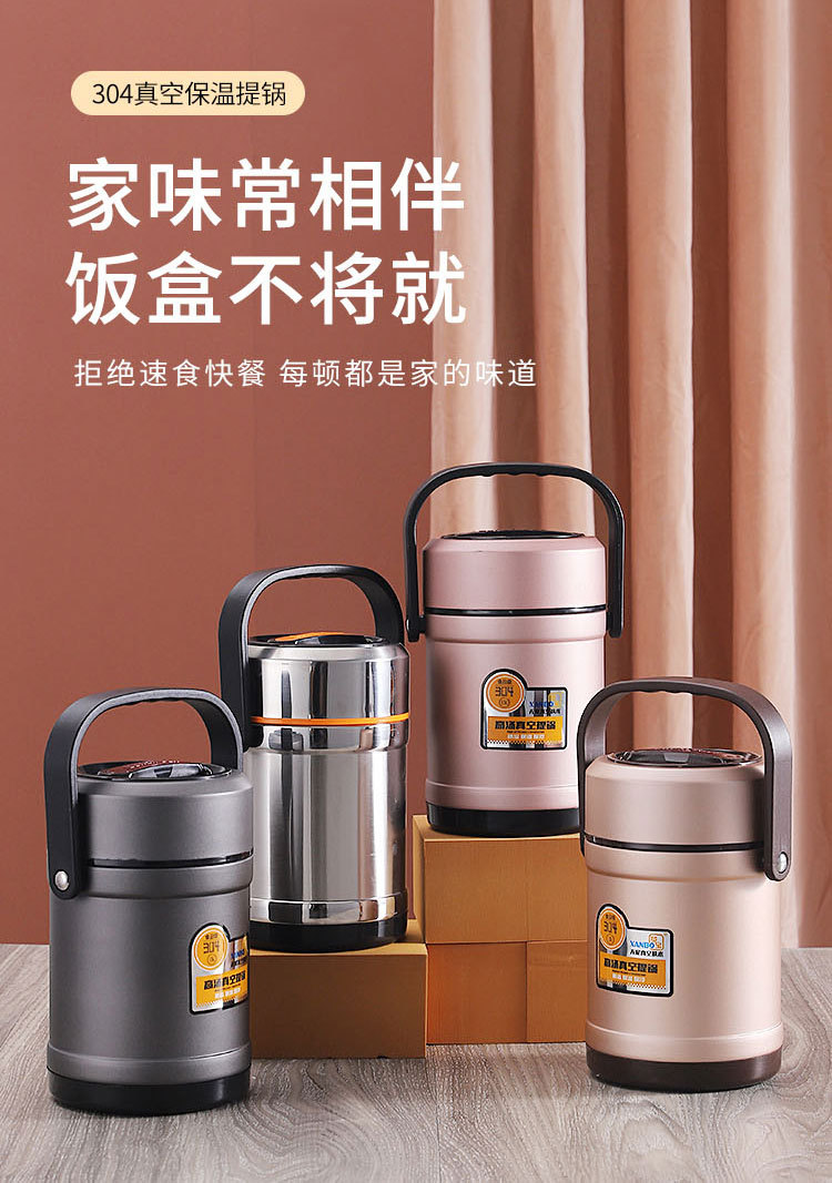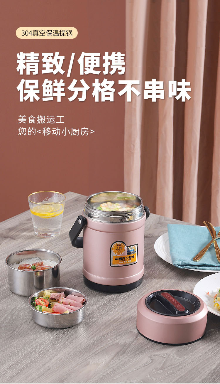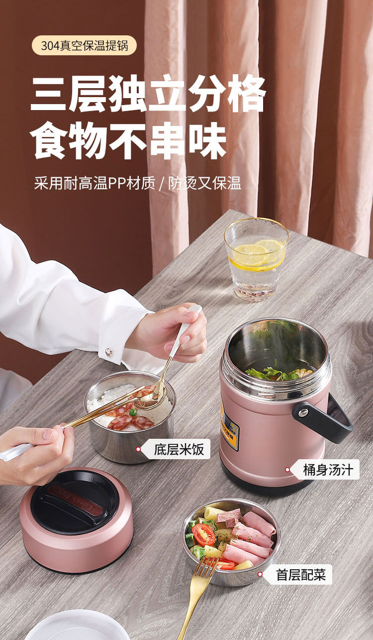 304ステンレス提鍋家庭用スープ桶多層真空弁当箱保温桶大容量送飯保温弁当箱