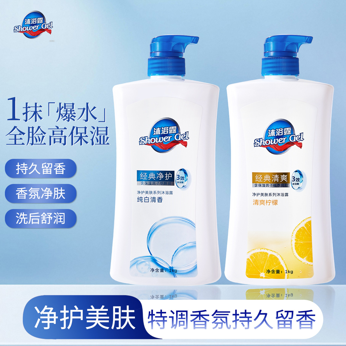 正品纯白清香芦荟柠檬沐浴露家庭用大容量经典沐浴液1000ml大瓶