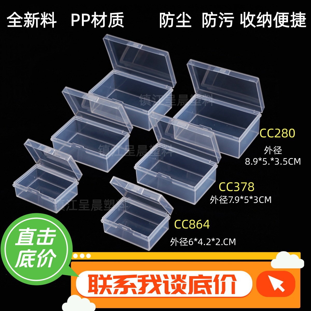 厂家批发PP透明零件塑料盒子长方形正方形翻盖产品包装收纳盒