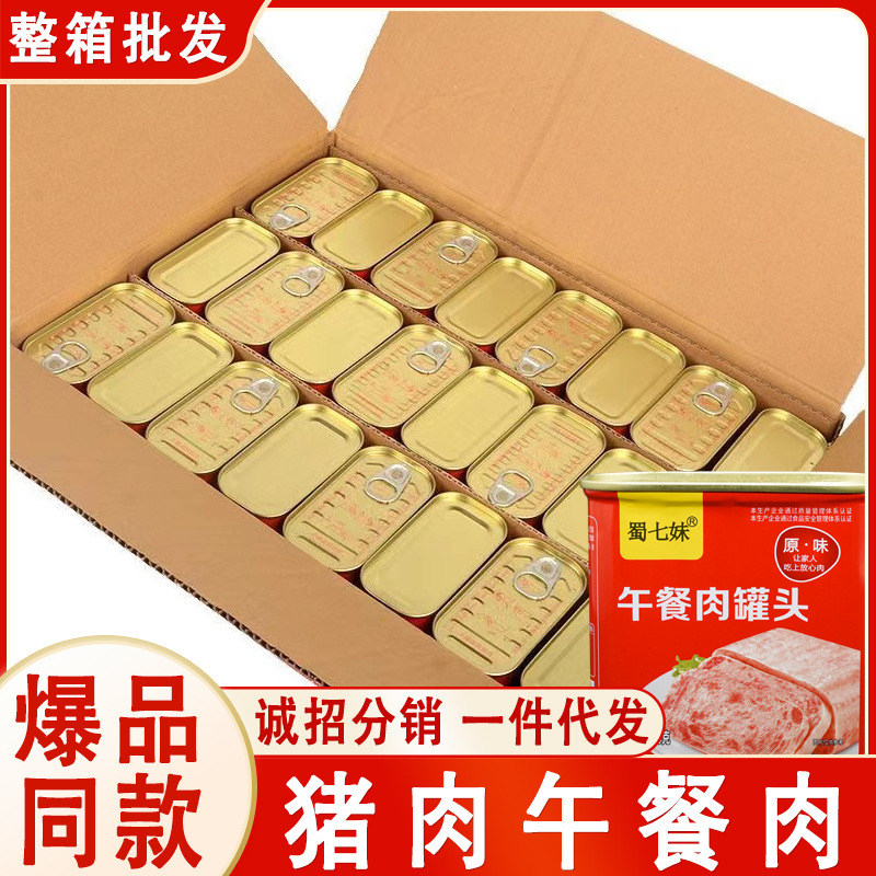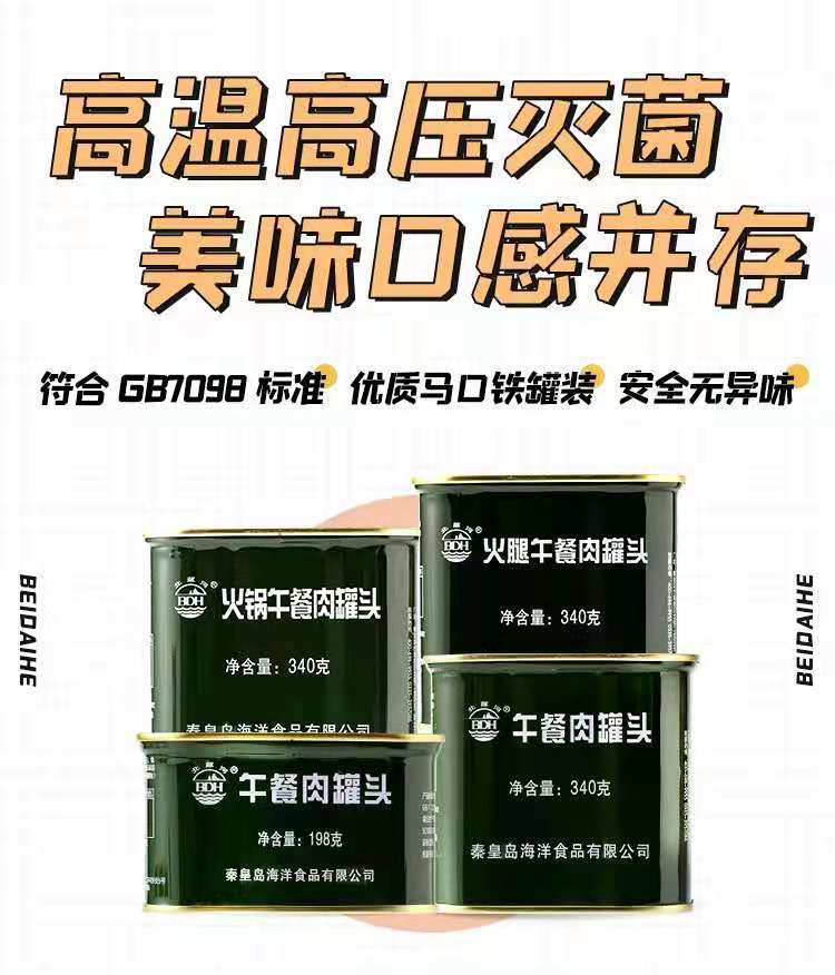 北戴河ランチミート缶詰、箱ごと、便利な即席食品、アウトドア、家庭用バーベキュー、鍋の食材、長期保存食品