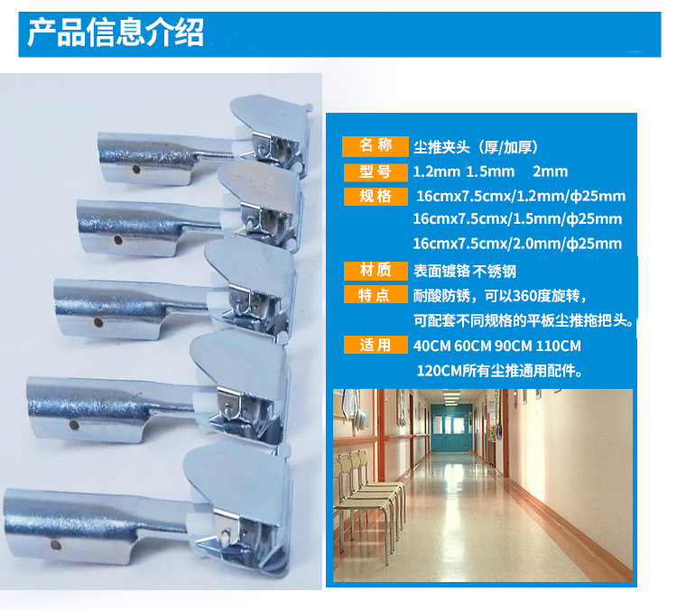 特厚2.0mmダブルスプリングクロムメッキ耐食性鉄自在360度チャックダストモップ綿地モップ部品