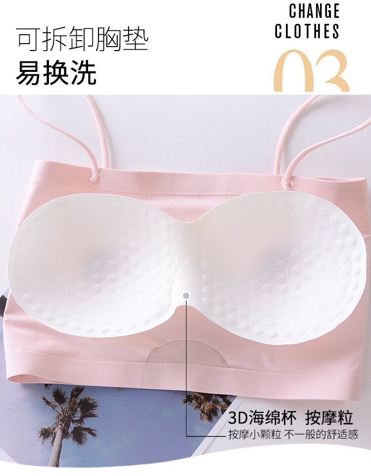 夏用アイスシルク胸包帯学生サスペンダーチューブトップ胸包帯下着女子学生韓国風スポーツベスト胸露出防止ベルト付き