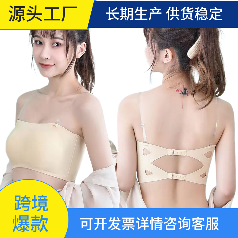 新商品の無痕の底のベストの幅の肩のベルトの半固定の胸のガードルの高い弾のu型の外は氷の糸の美の背もたれのガーターを着ます。