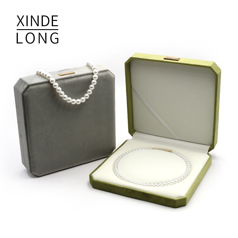 ライトラグジュアリーグラスグリーンパールネックレス収納ボックスママネックレスジュエリーボックスベルベットチェーンギフトボックス