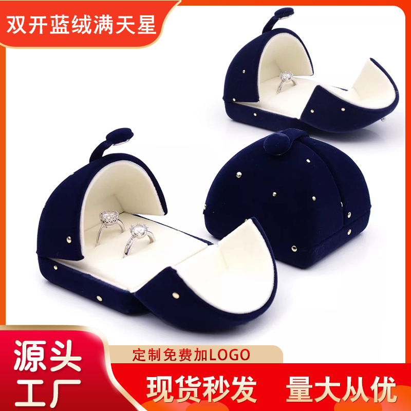 ダブルオープンブルーベルベット満天星クリエイティブジュエリー首飾り箱指輪箱ピアス箱ネックレス箱真珠プレゼント空箱
