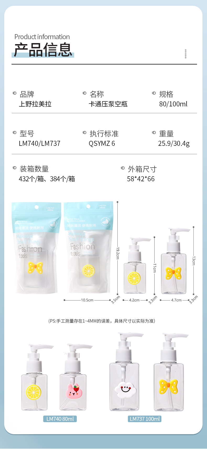 LMLTOP 50 ミリリットルスプレーボトルシングルパック漫画ペットスプレーボトル空ボトル旅行化粧品詰め替えボトル LM727