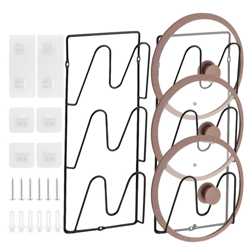 クロスボーダー壁掛け鍋蓋ラック鉄芸厨房収納棚穴なし多層v型鍋蓋排水棚卸売り