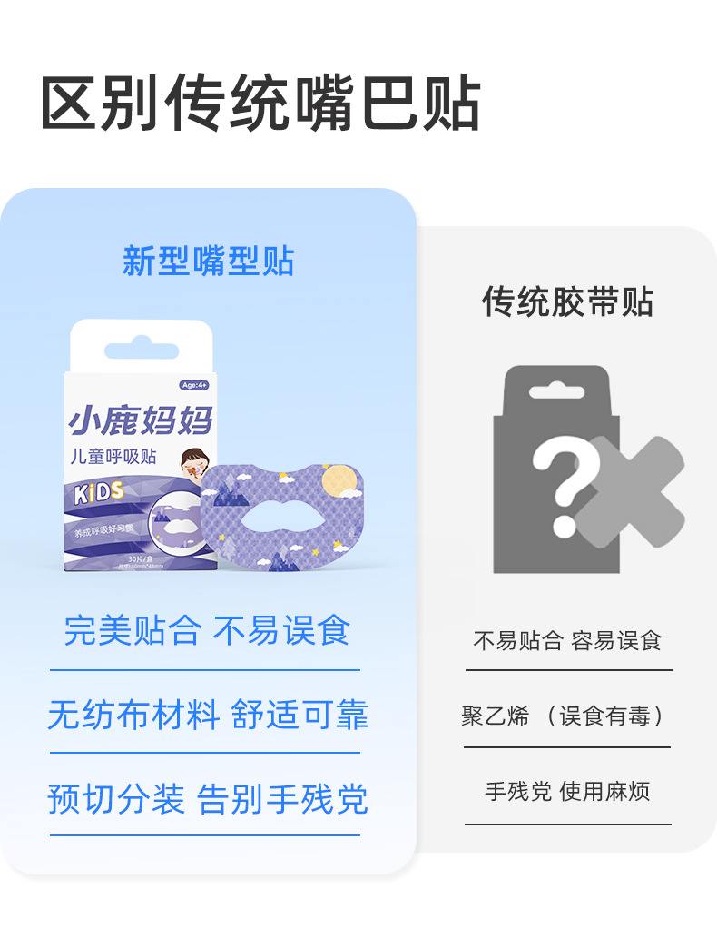 儿童呼吸闭口贴闭嘴贴口呼吸矫正贴防张嘴封口贴止鼾呼贴工厂批发