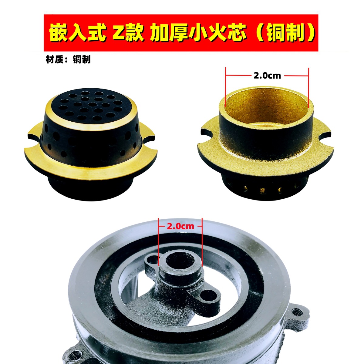 ガスストーブ用小火蓋、ガスストーブ付属品、ストーブコア、ストーブヘッド、銅コア火分割器、ストーブヘッド火蓋