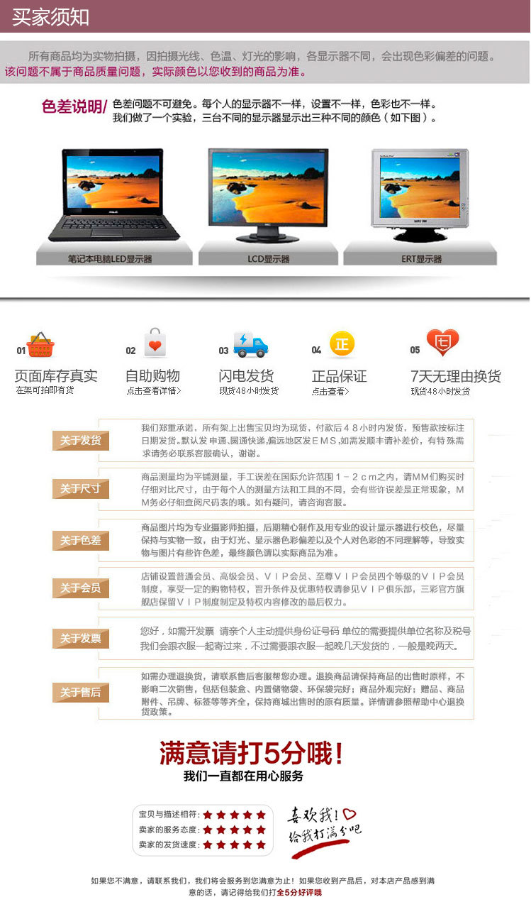 亲,拍的时候请按每种款式每色10的倍数拍哦~